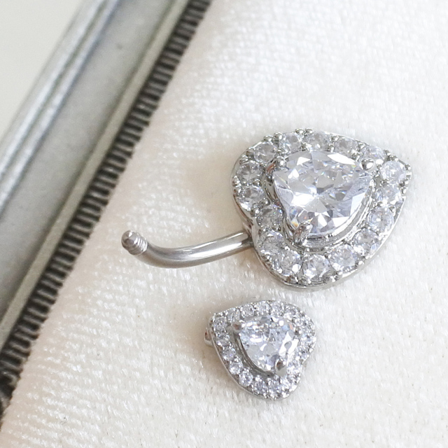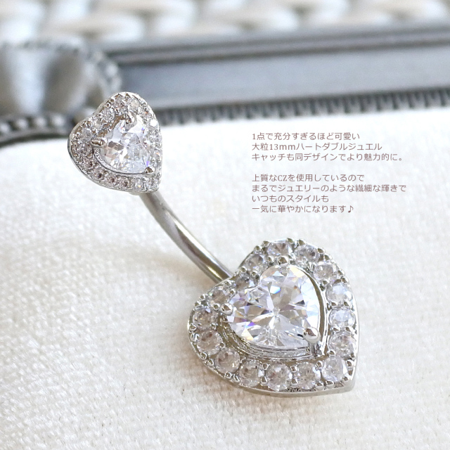 [14G ]1点で充分すぎるほど可愛い ♪大粒13mmハート ダブル ジュエル へそピアス ボディピアス [シルバー ]1185