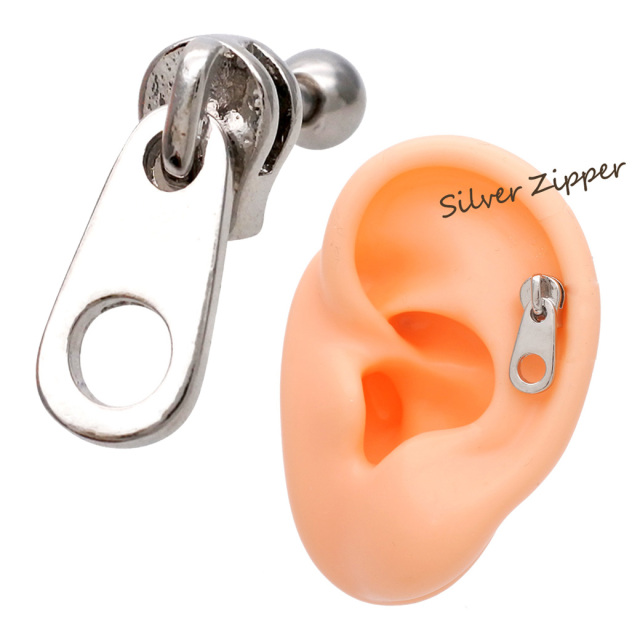 [14G 16G ]持ち手部分が揺れる♪ジッパー モチーフ。スライダー ファスナー ロック メンズ 軟骨ピアス ヘリックス ボディピアス 1195