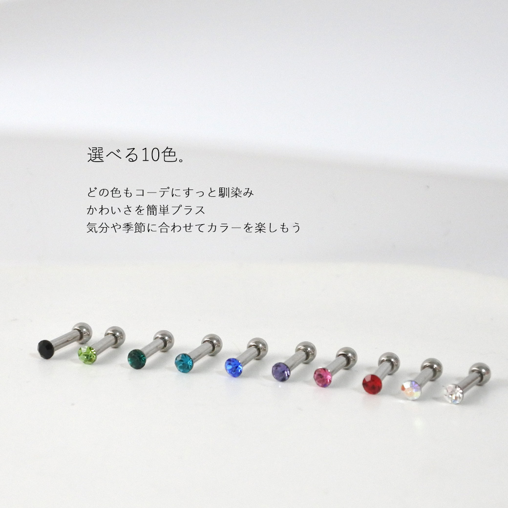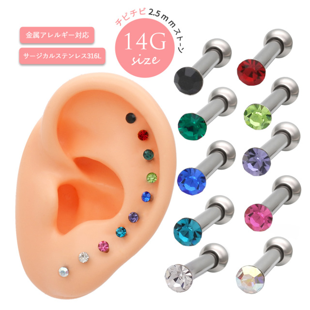 ◇Best29◇ [14G ] どの色もコーデにすっと馴染みかわいさを簡単プラス超小粒 ストーン デザイン ストレート 軟骨ピアス ヘリックス ボディピアス [2.5mmストーン]0065