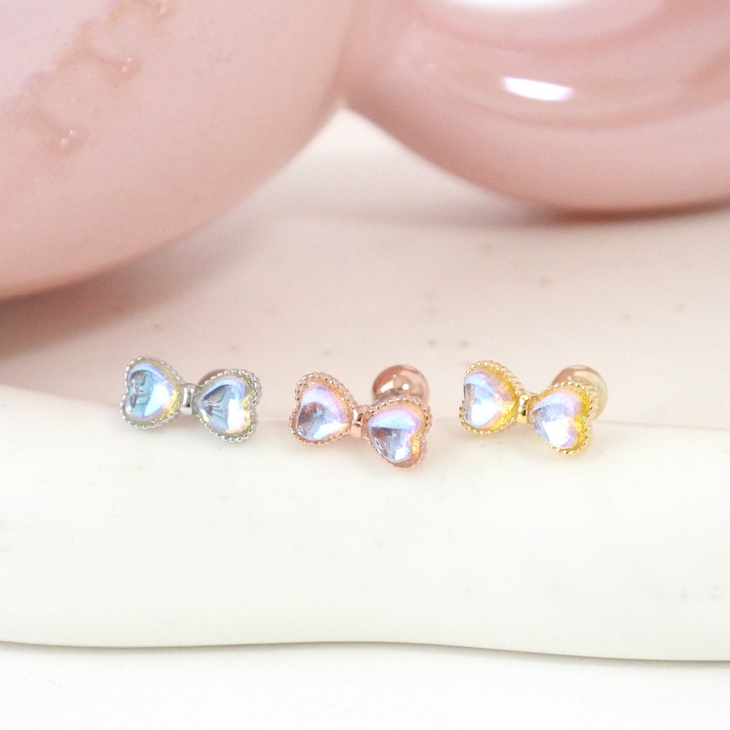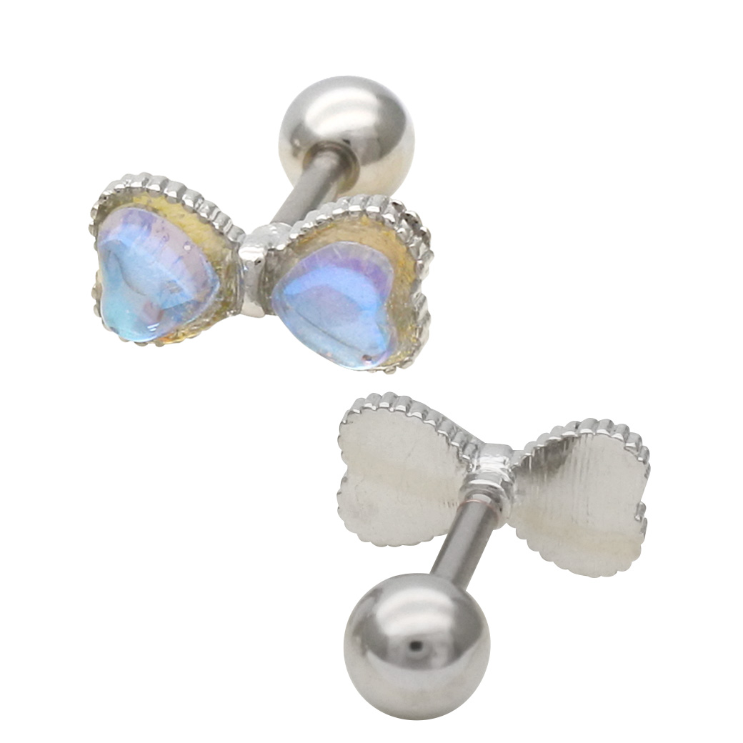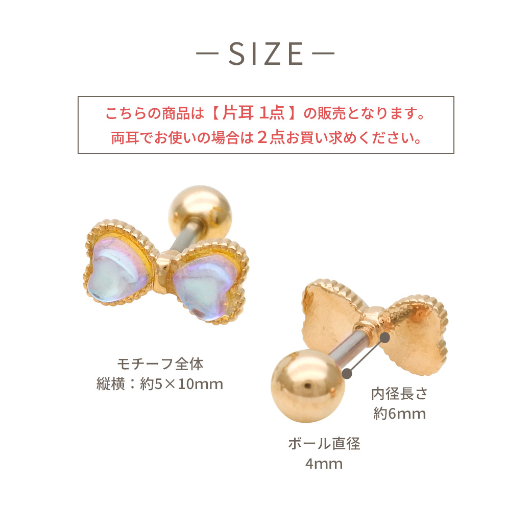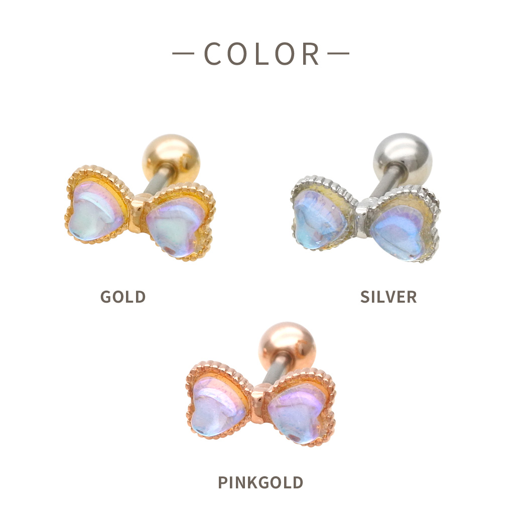 【3月新作】[14G 16G ]角度によって表情変わる♪うるツヤ可愛いオーロラ リボン ストレート 軟骨ピアス ヘリックス ボディピアス 0121
