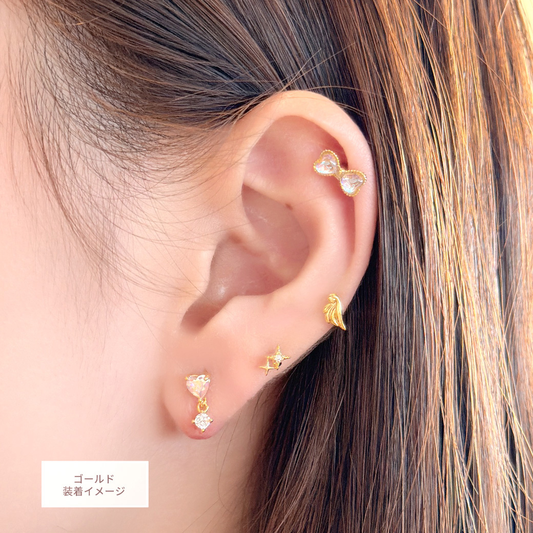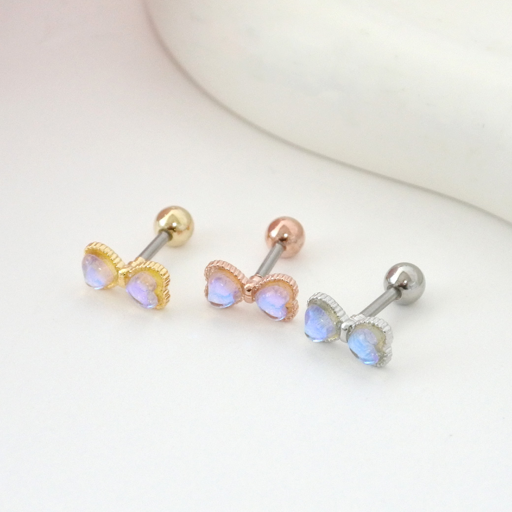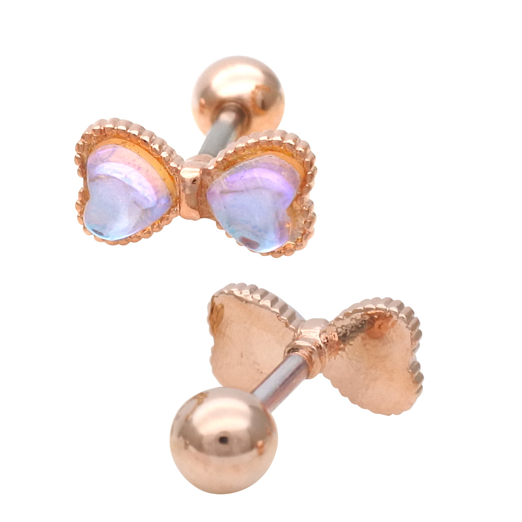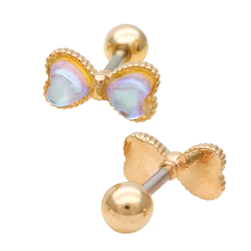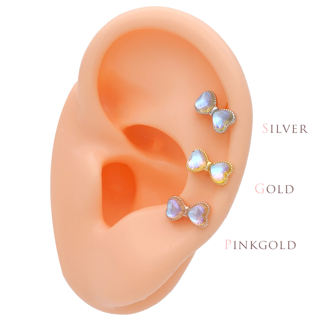 【3月新作】[14G 16G ]角度によって表情変わる♪うるツヤ可愛いオーロラ リボン ストレート 軟骨ピアス ヘリックス ボディピアス 0121