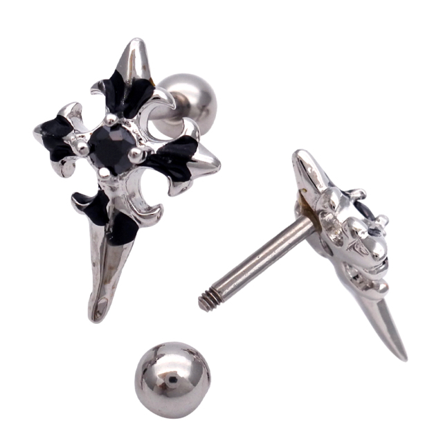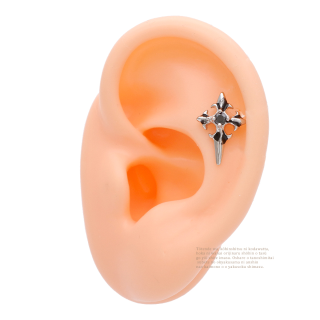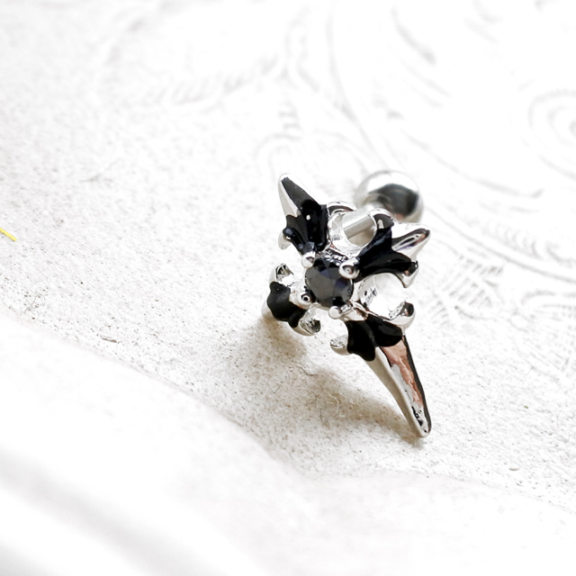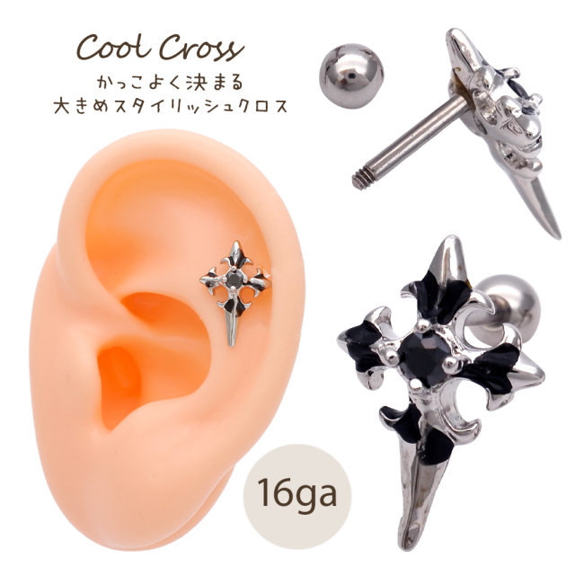 [16G]コーデにスパイスを効かせる ブラック クロス 十字架 BLACK ストレート軟骨ピアス ヘリックス ボディピアス 0131