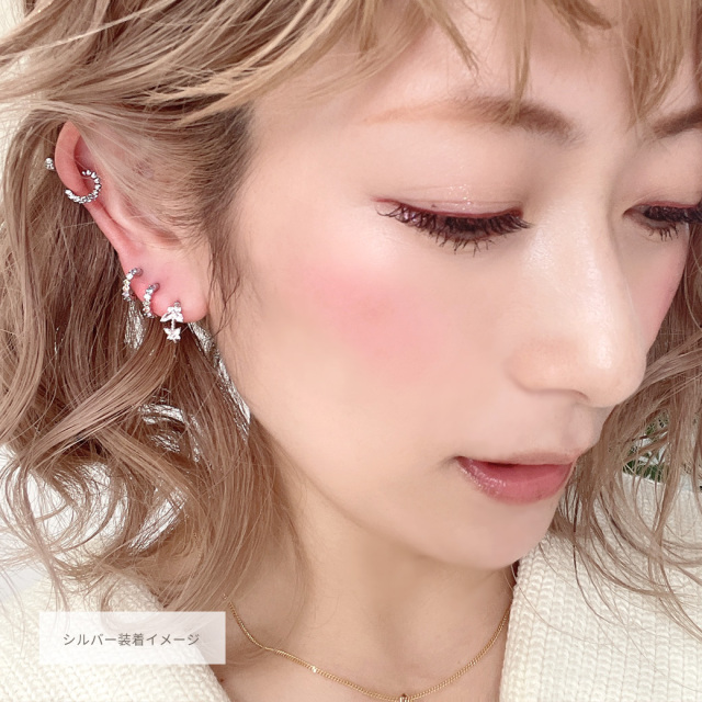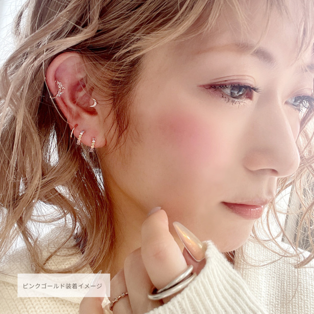 実際に手元に届くと小さくて可愛いッ! 付けてみてもめちゃくちゃ可愛いッ! 暑くなって髪の毛をアップにする事が増えるのでピアスとの相性も抜群です。