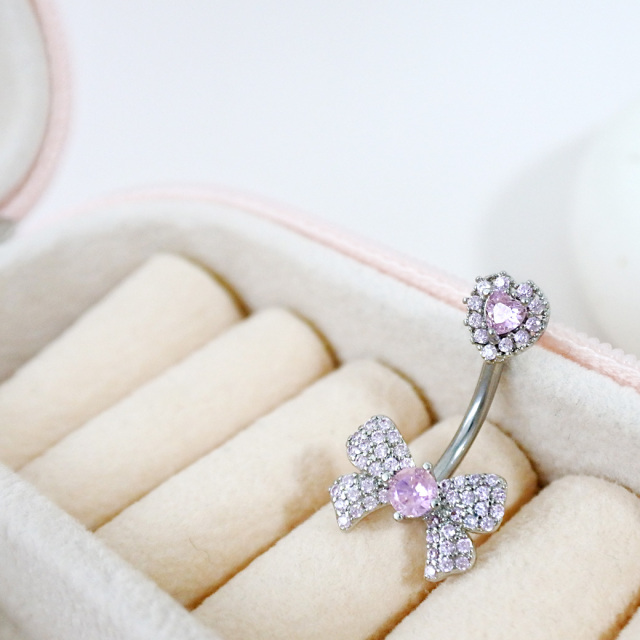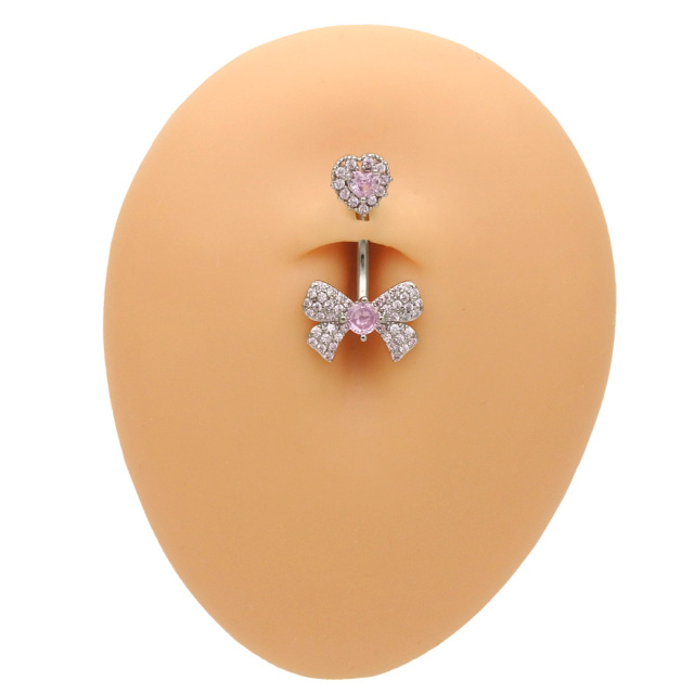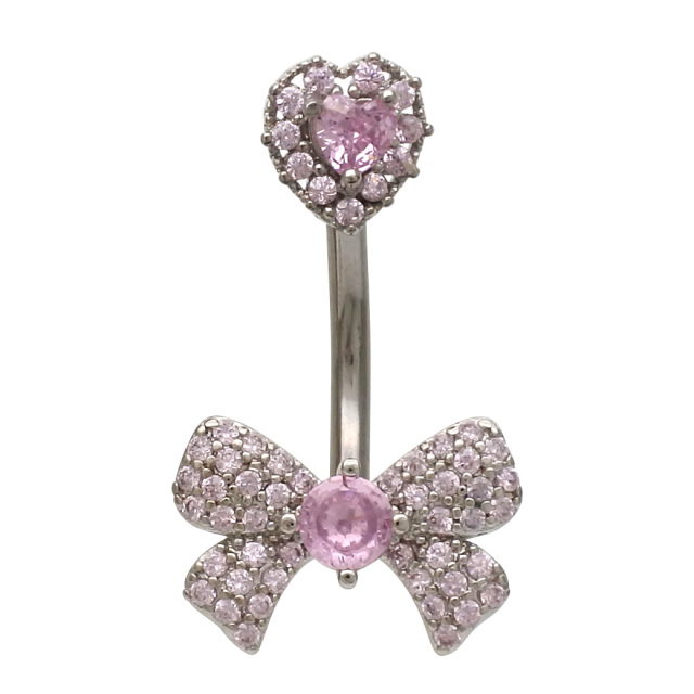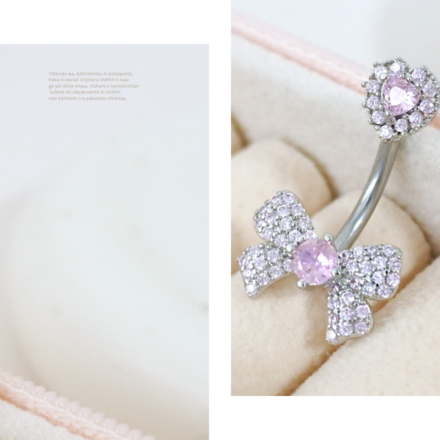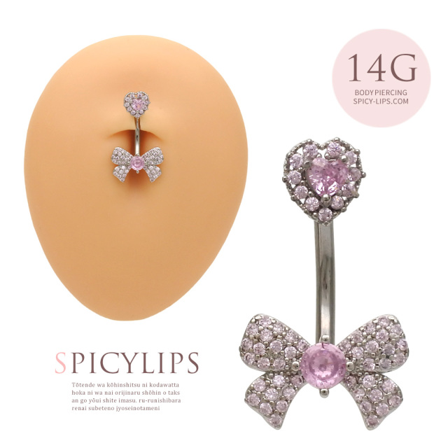 [14G ]キュートなキラキラ リボン とハート のデコレーション 大人可愛い へそピアス ボディピアス 0169