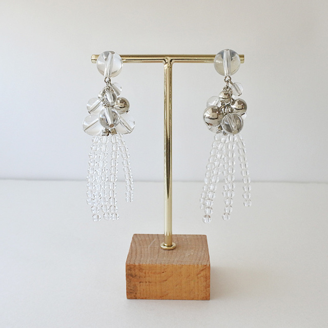 両耳セット ピアス 耳元でゆらゆら揺れる メタル × クリア ボール ピアス 0276
