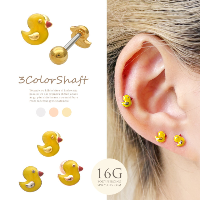 [16G ]ちょっぴりユニークな遊び心満点!黄色のアヒル モチーフストレート 軟骨ピアス ヘリックス ボディピアス 0289