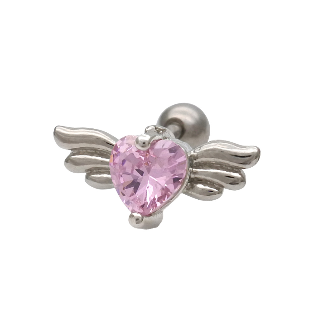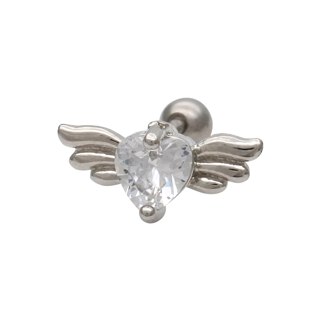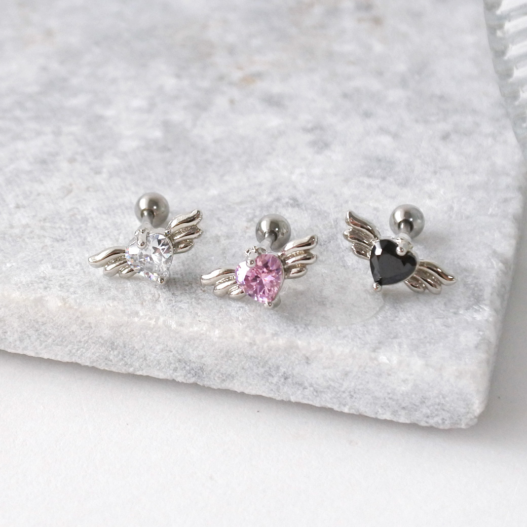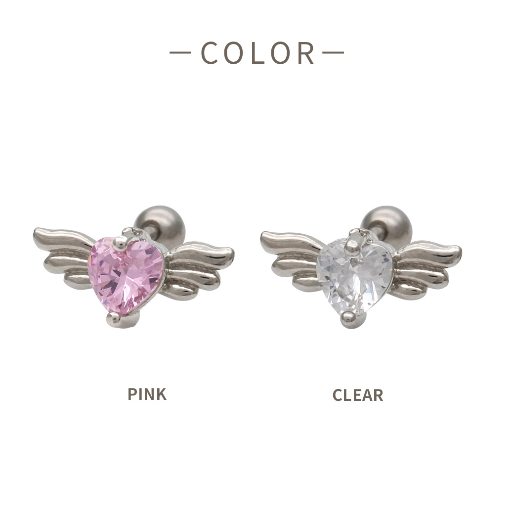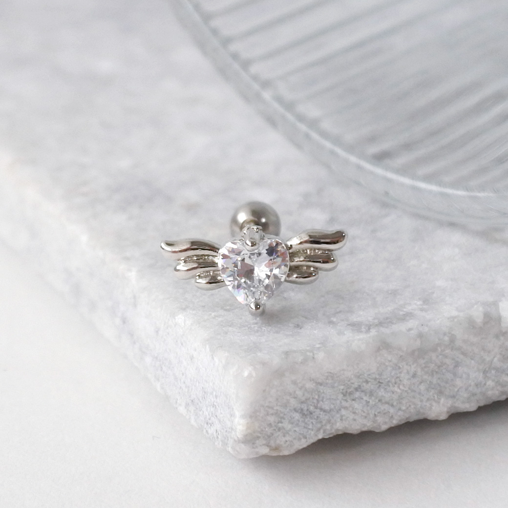 【4月再入荷】【3月新作】[14G 16G ]媚びない可愛さを演出キュービック ウィング ハート デザイン ストレート 軟骨ピアス ヘリックス ボディピアス 0335