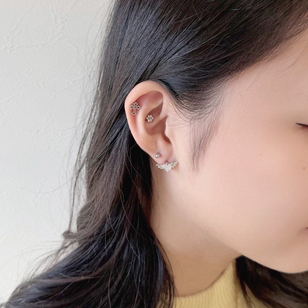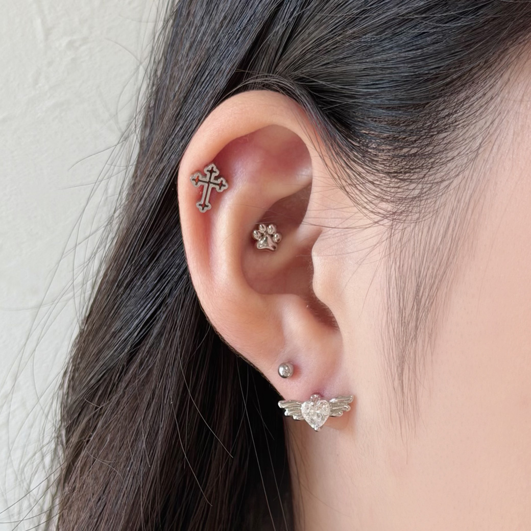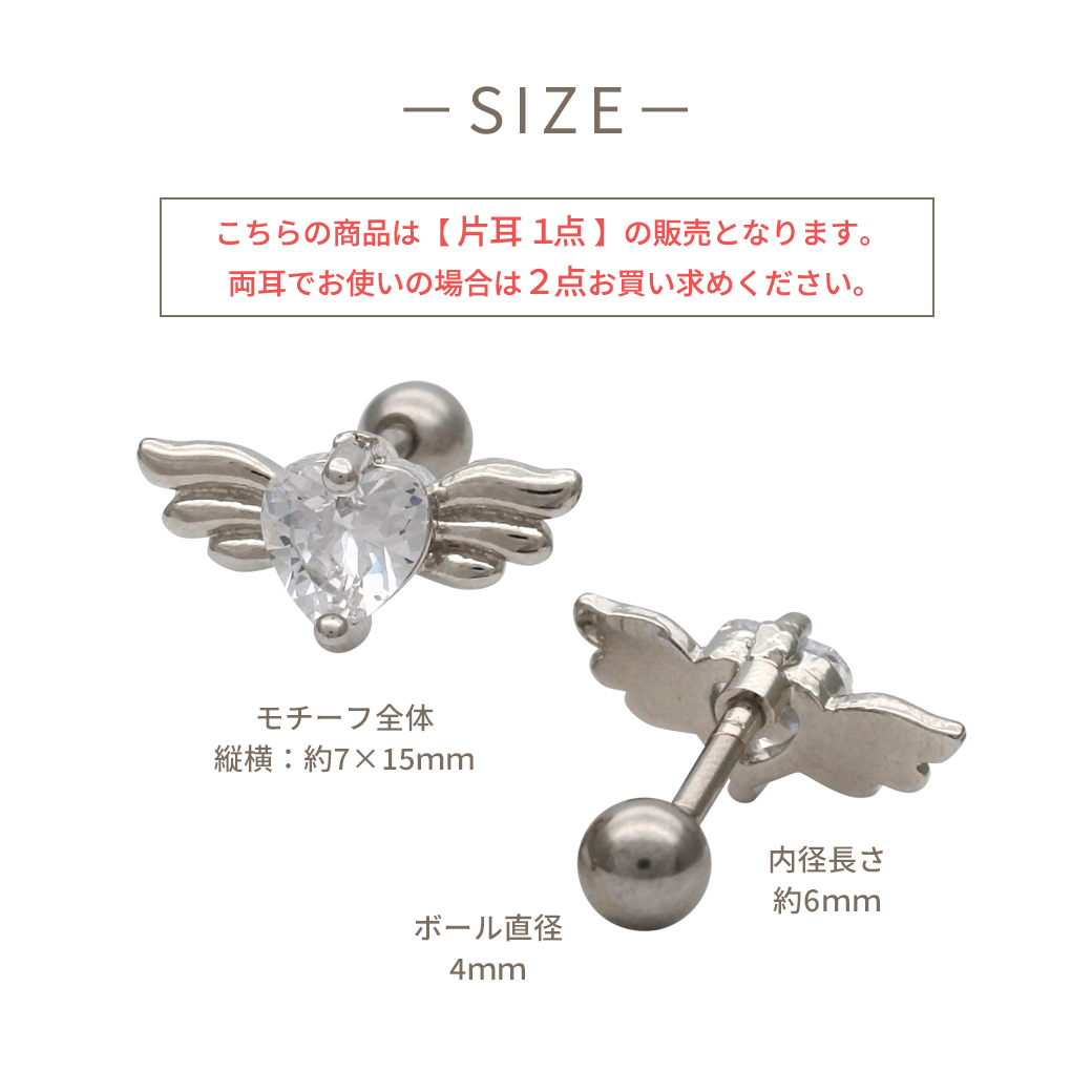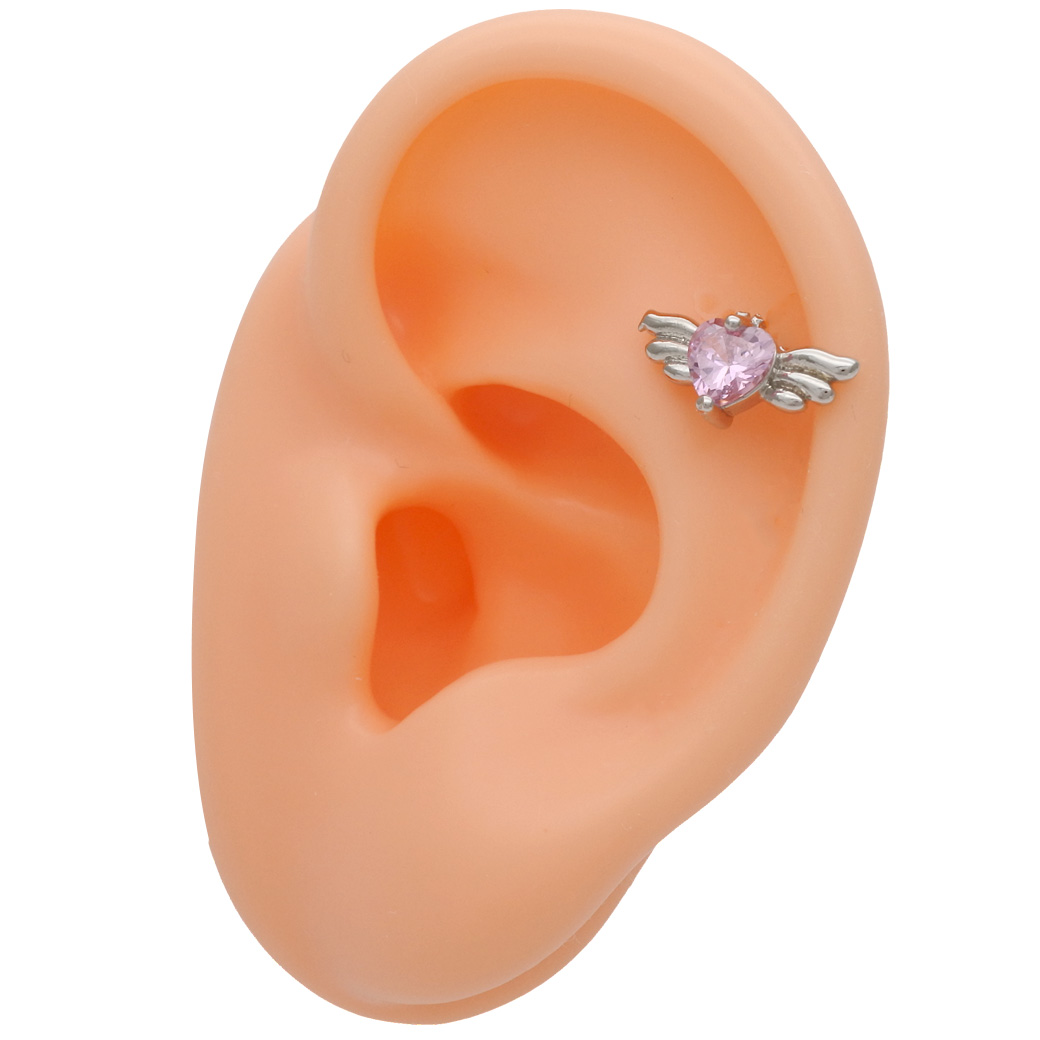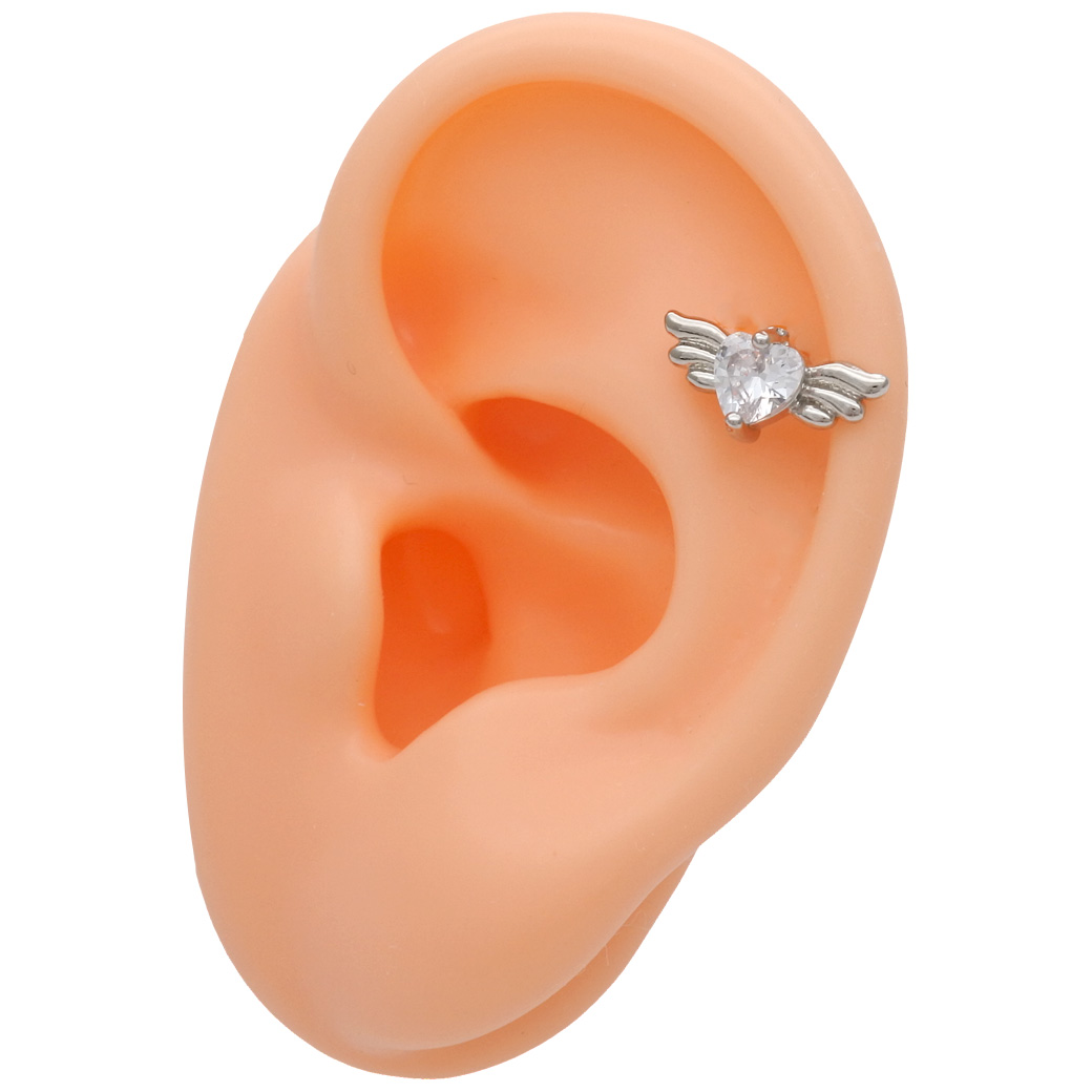 【4月再入荷】【3月新作】[14G 16G ]媚びない可愛さを演出キュービック ウィング ハート デザイン ストレート 軟骨ピアス ヘリックス ボディピアス 0335