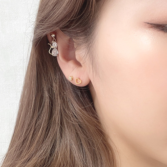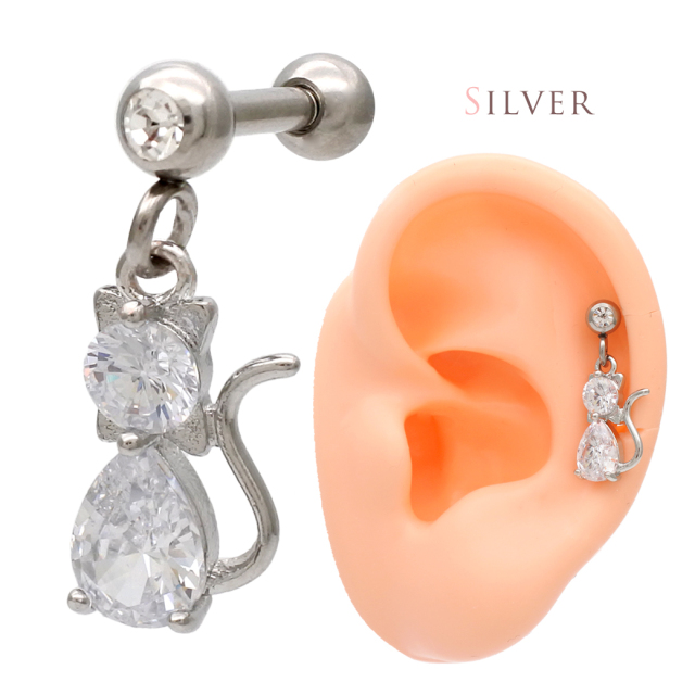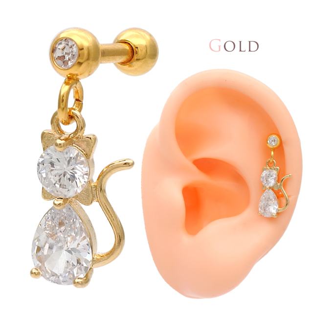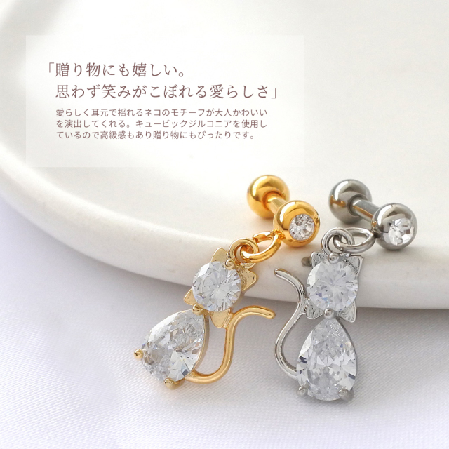 [16G 14G ]愛らしく耳元で揺れるネコ のモチーフ 贈り物にも嬉しい 猫 ねこ cat チャーム 軟骨ピアス ヘリックス ボディピアス 0363