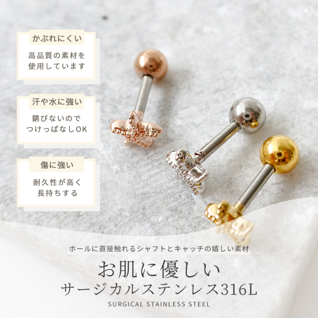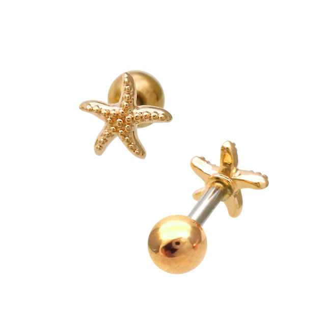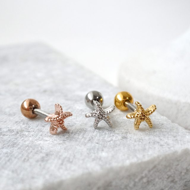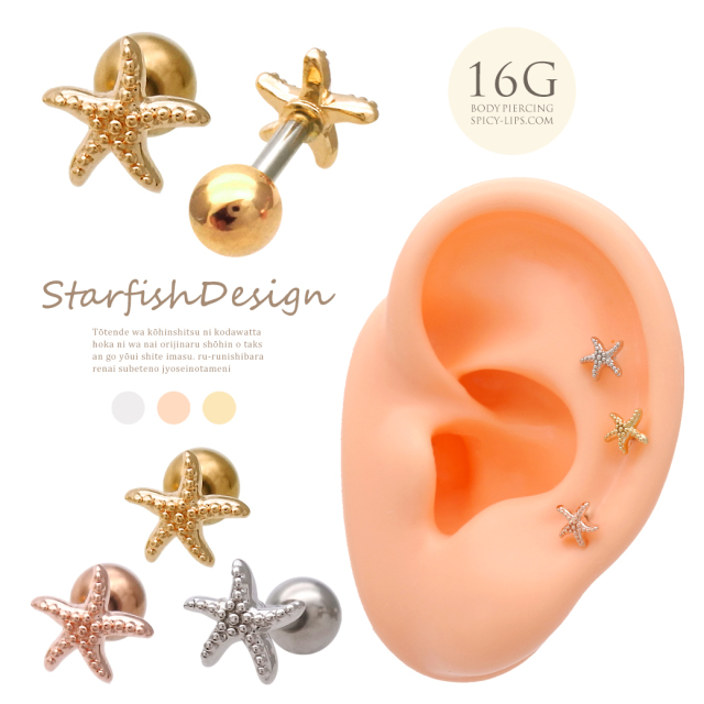 [16G ]大人マリンスタイルを引き立てる ちびちび スターフィッシュ ヒトデ モチーフ ストレート 軟骨ピアス ヘリックス ボディピアス 0366tss