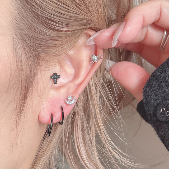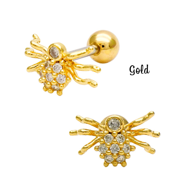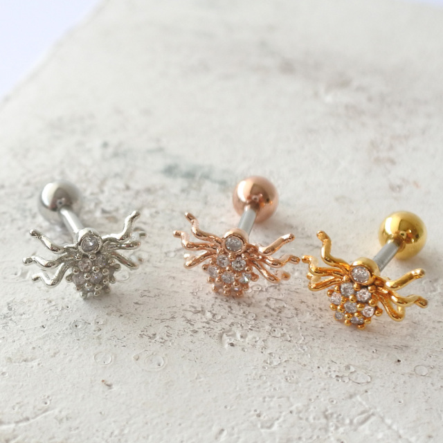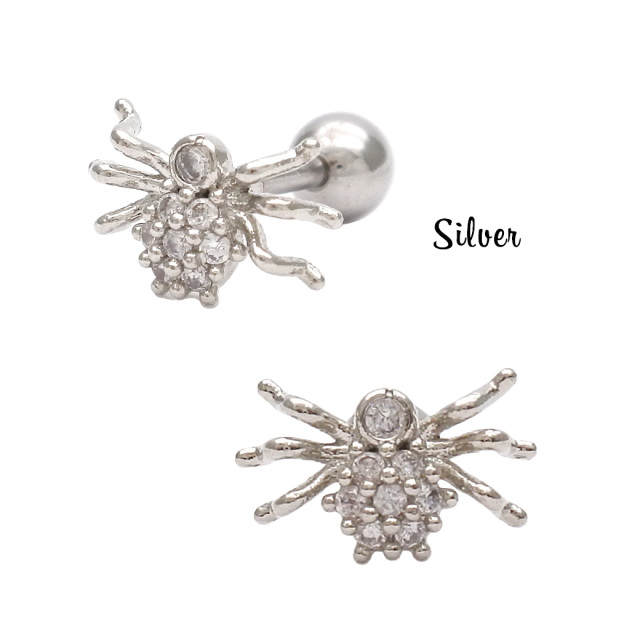 [16G]個性的なデザインでインパクトを狙う スパイダー キュービックジルコニア spider ストレート 軟骨ピアス ヘリックス ボディピアス 0375