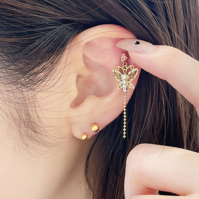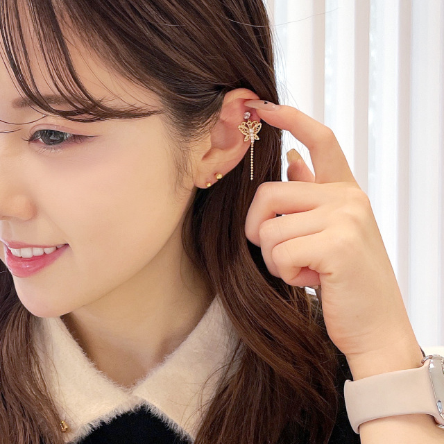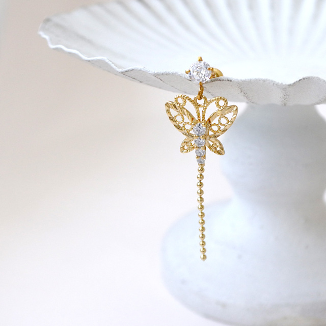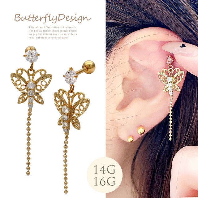 [14G 16G ]ゆらゆら揺れて女っぽさを引き出す バタフライ × ボールチェーン 蝶々 butterfly 軟骨ピアス ヘリックス ボディピアス 0415