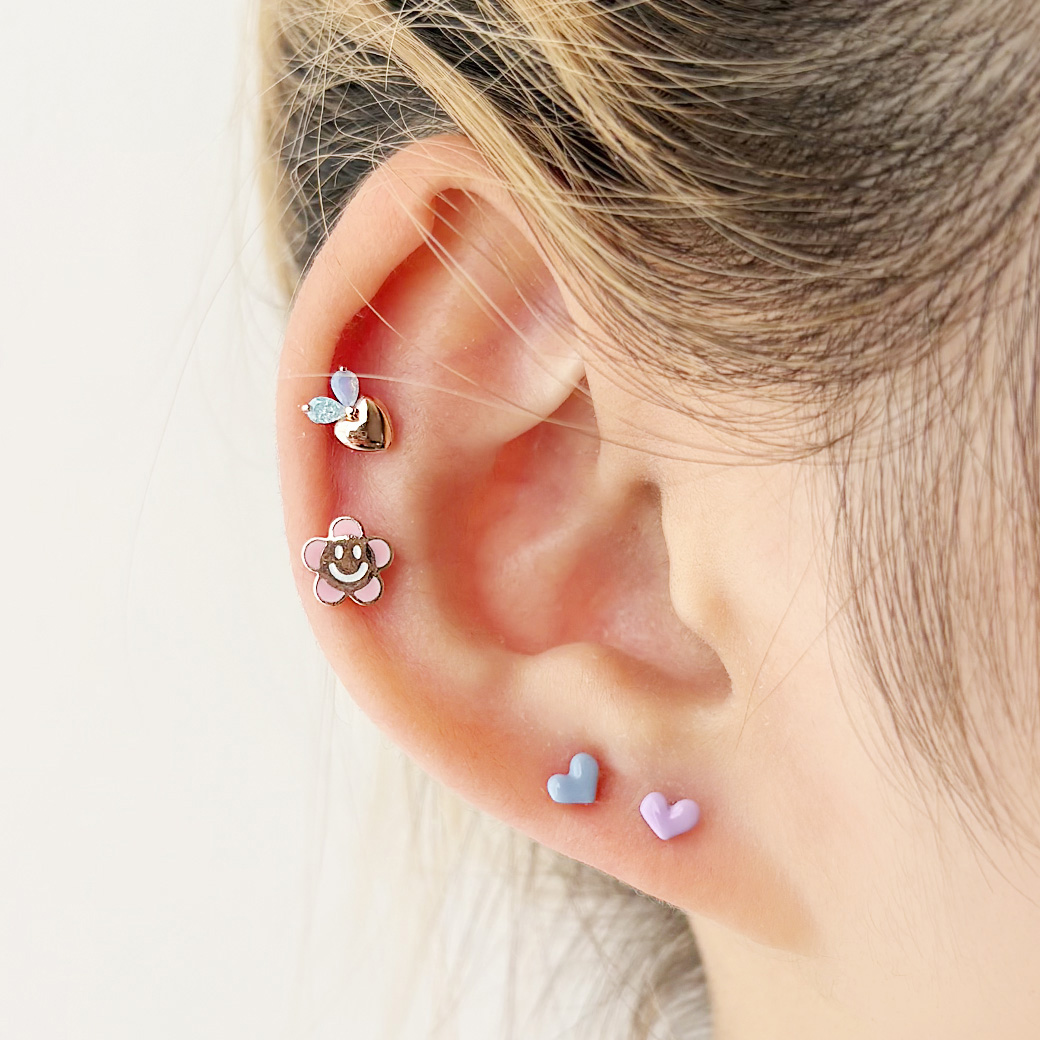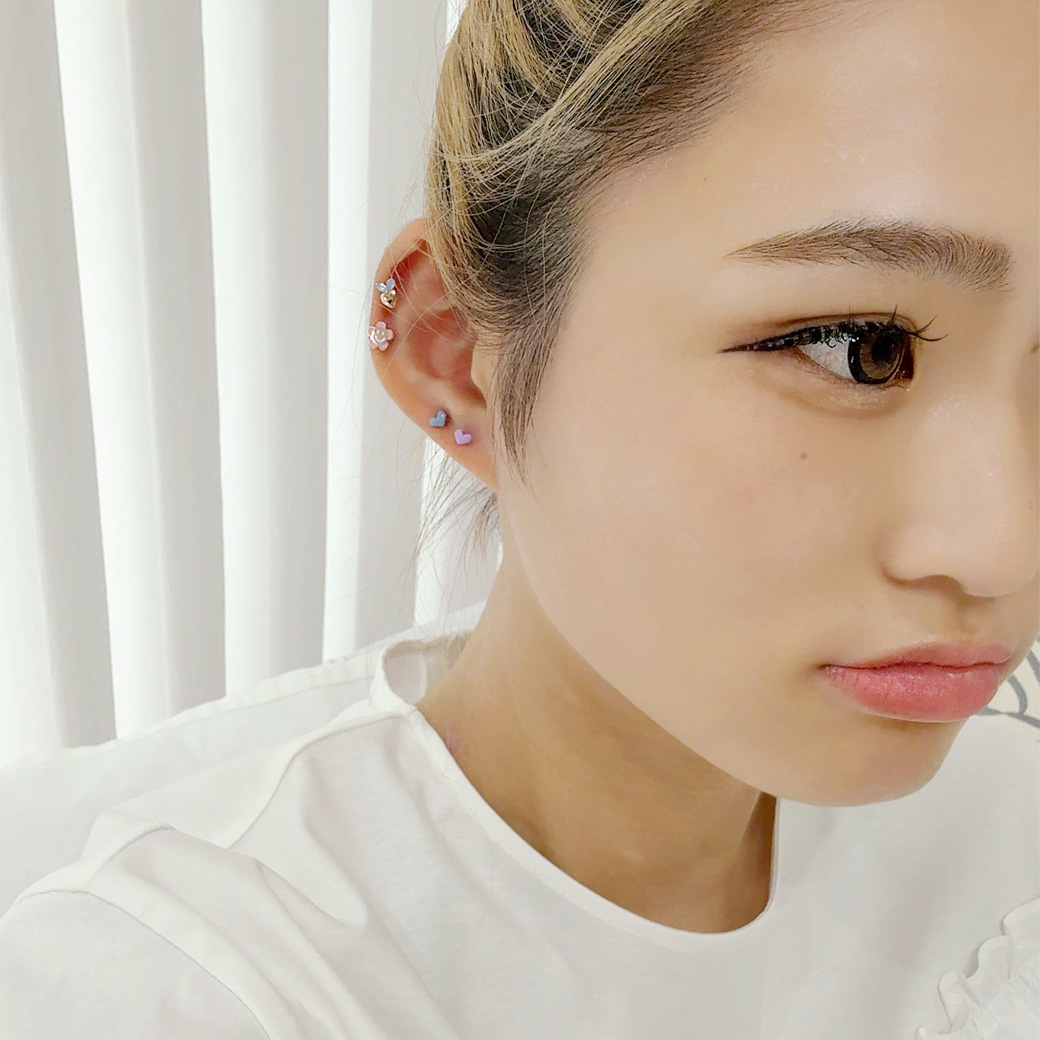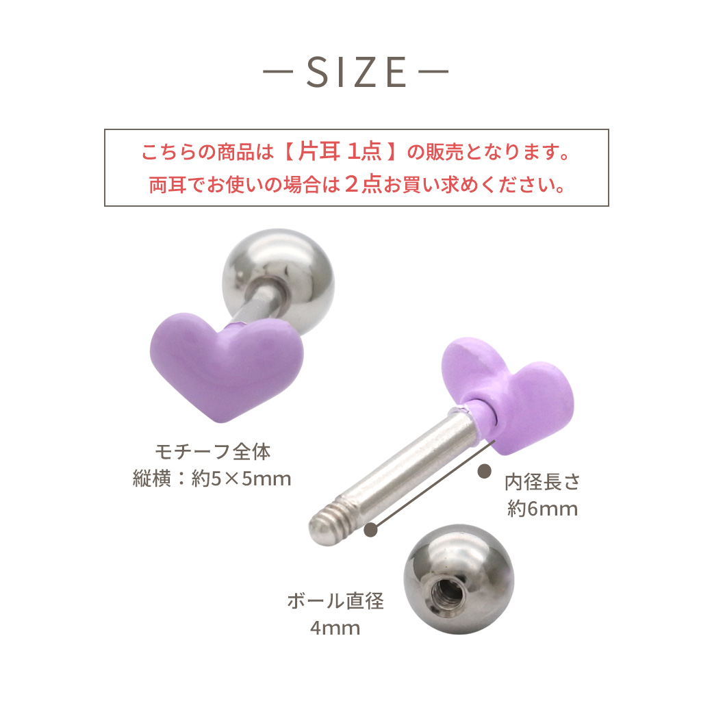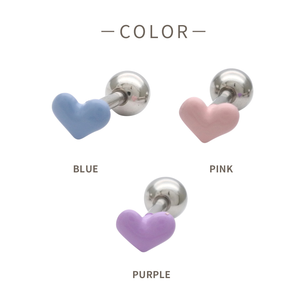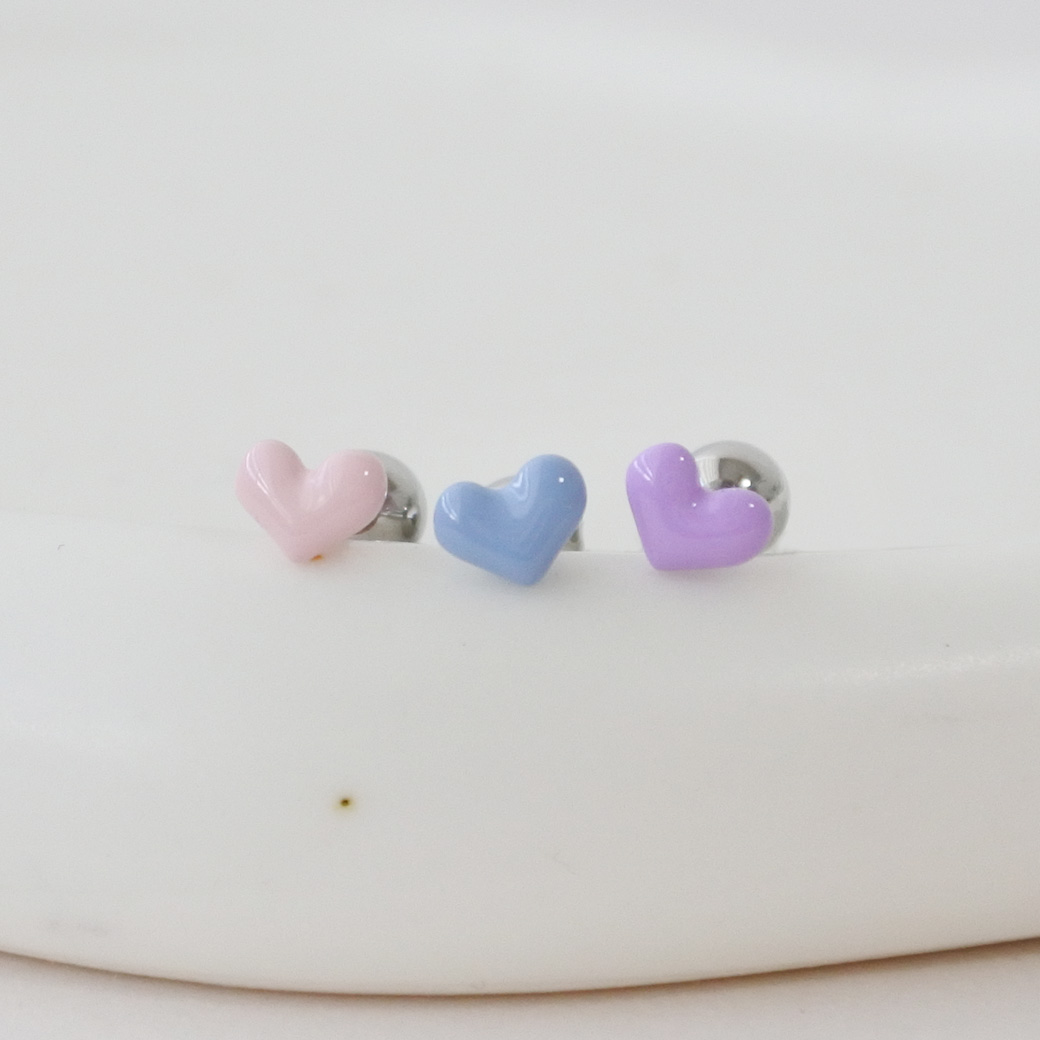 【4月新作】 [16G ]ころんと丸みのあるフォルムが可愛いやさしく彩るぷっくりハート ストレート 軟骨ピアス ヘリックス ボディピアス 0432