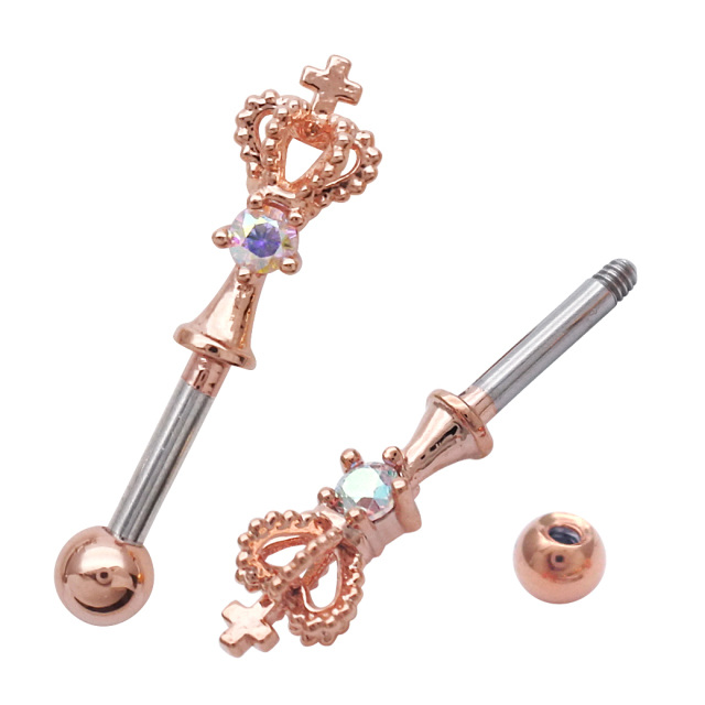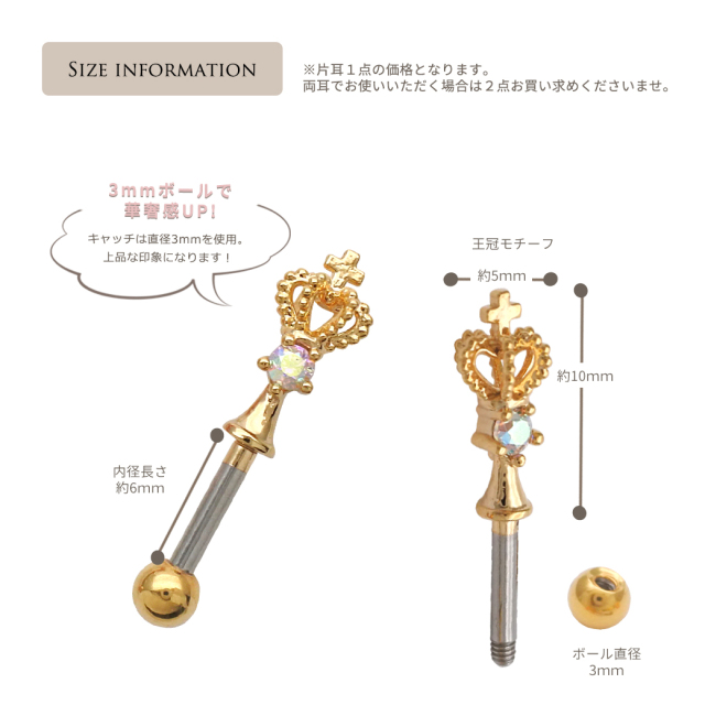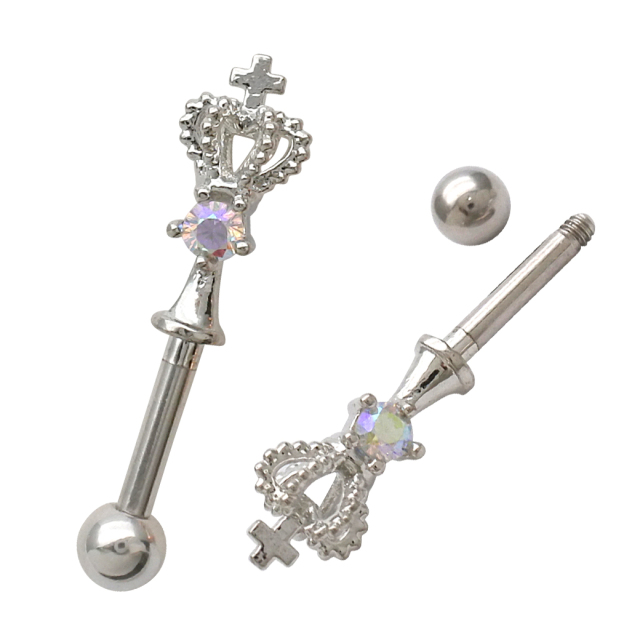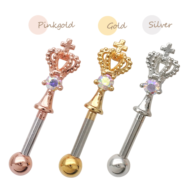 [14G 16G ]立体感ある ちび クラウン オーロラ CZ 王冠 モチーフ アンテナヘリックス ストレート 軟骨ピアス ヘリックス ボディピアス 0434