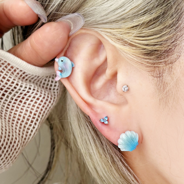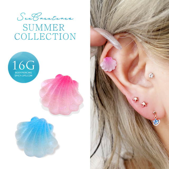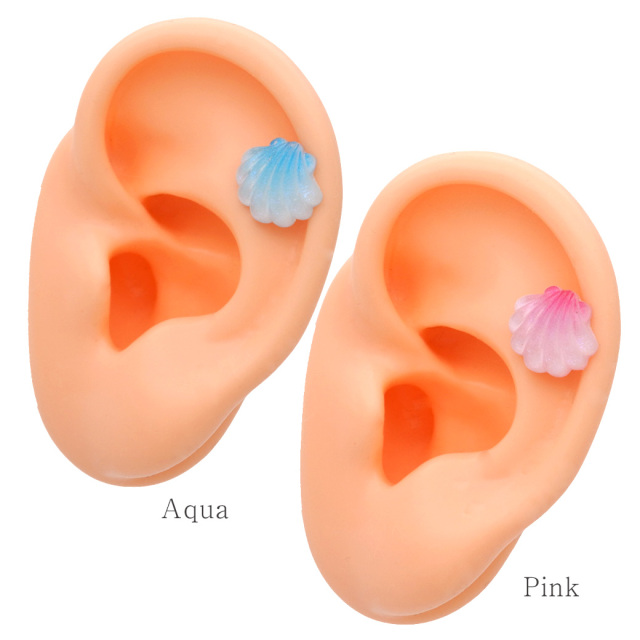 [16G ] 夏らしい透明感のある シェル モチーフ 貝 ストレート 軟骨ピアス ヘリックス ボディピアス 0485