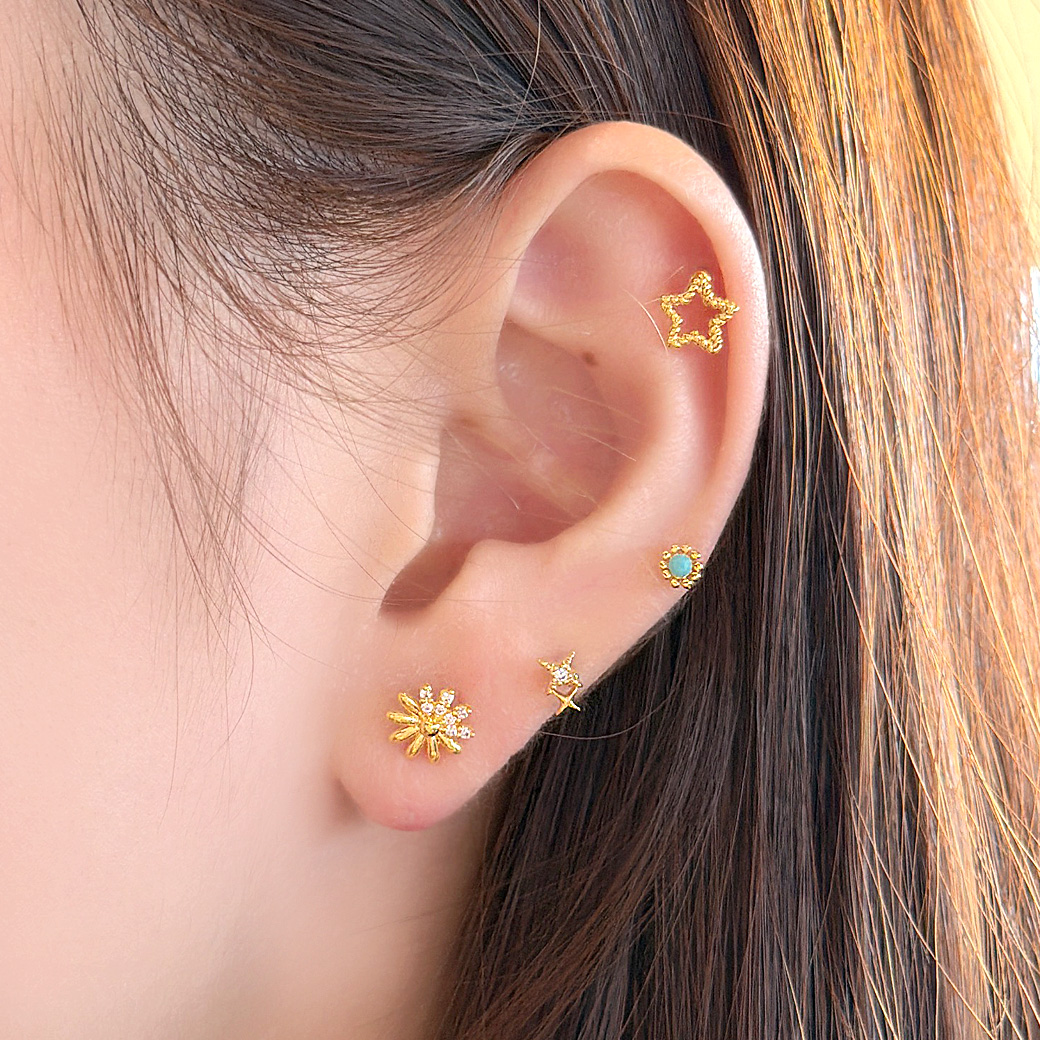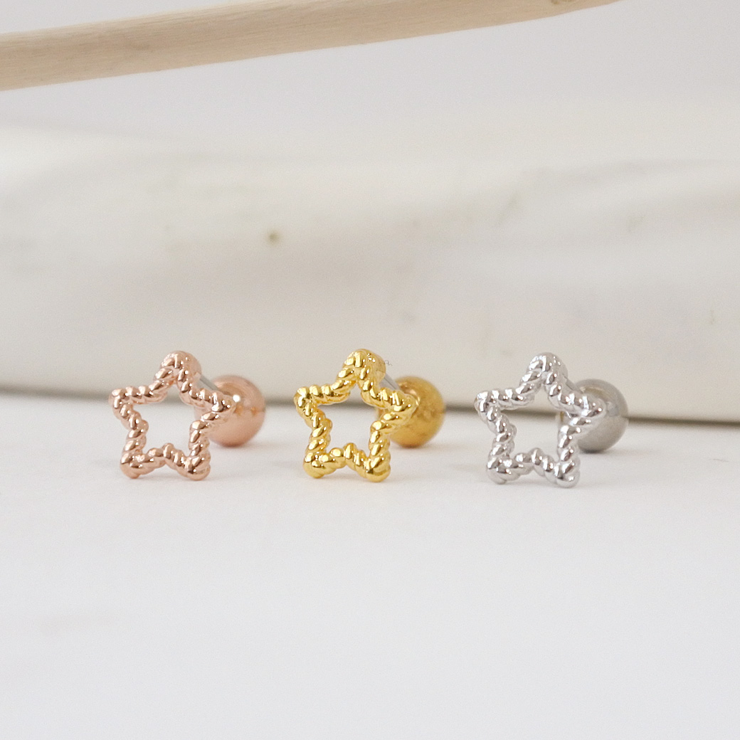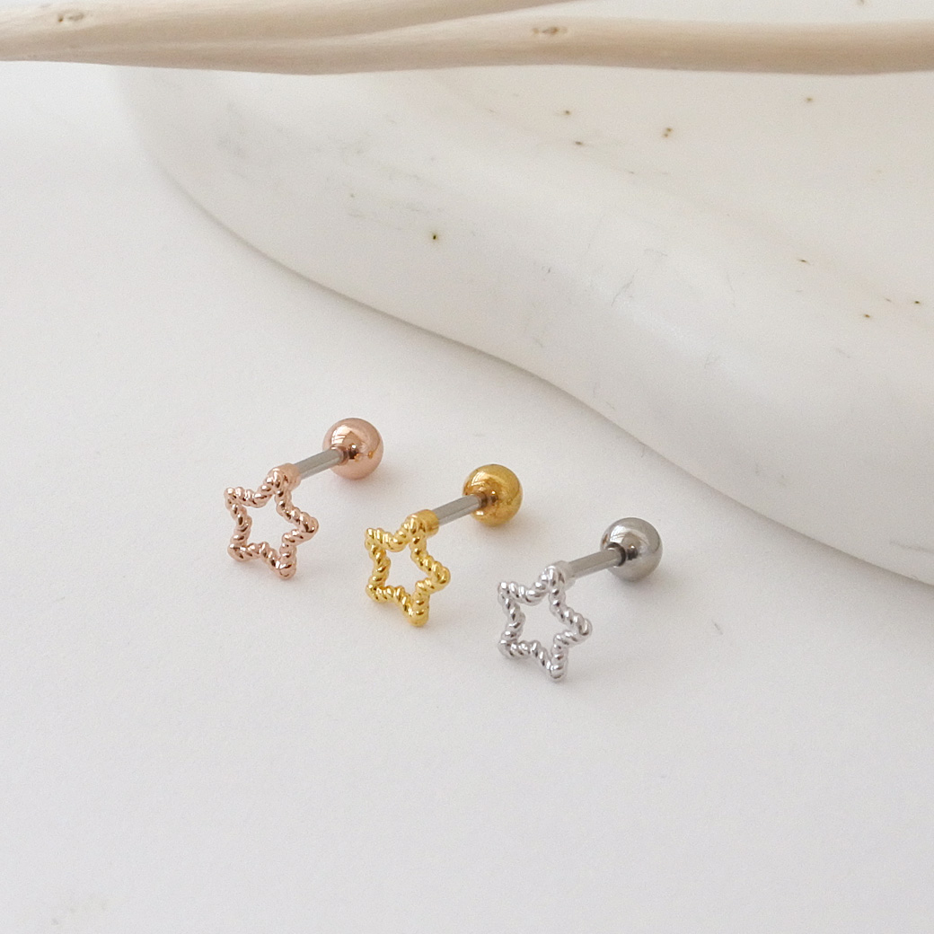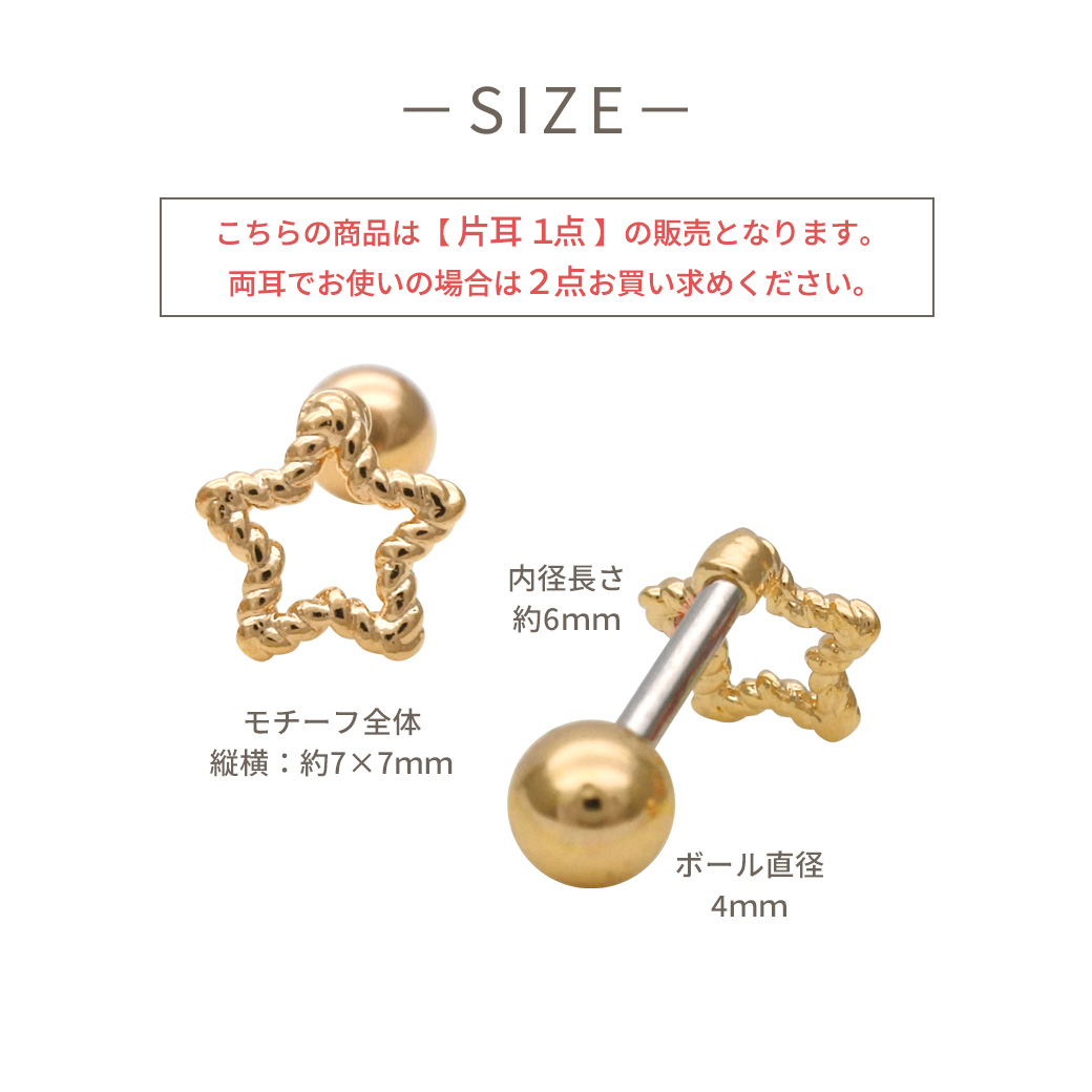 【3月新作】[14G 16G ]甘くなりすぎない大人デザインさりげなく輝く、抜け感スター ストレート 軟骨ピアス ヘリックス ボディピアス 0496