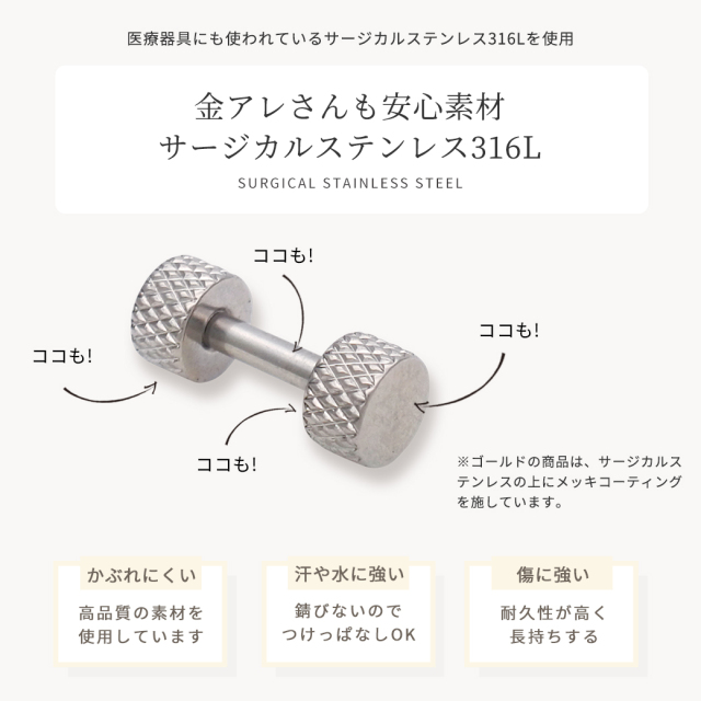 《素材》高品質サージカルステンレス316L/GOLDコーティング