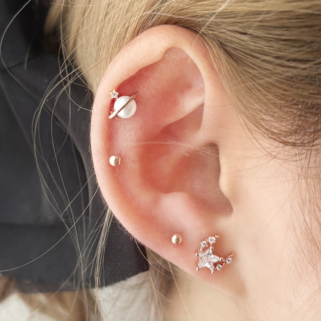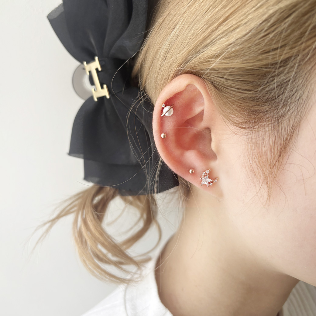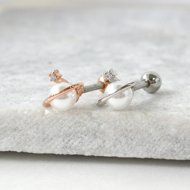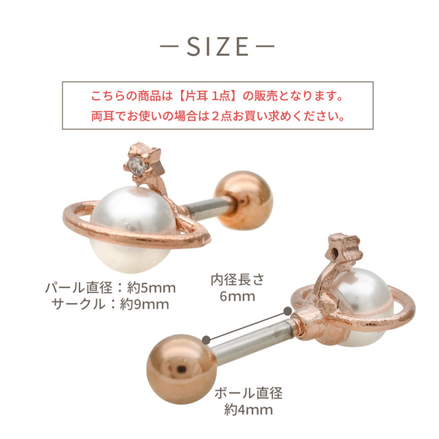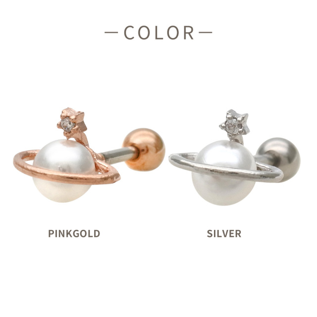[14G 16G ]1点投入するだけでお顔周り華やぐ土星 ×パール モチーフストレート 軟骨ピアス ヘリックス ボディピアス 0629