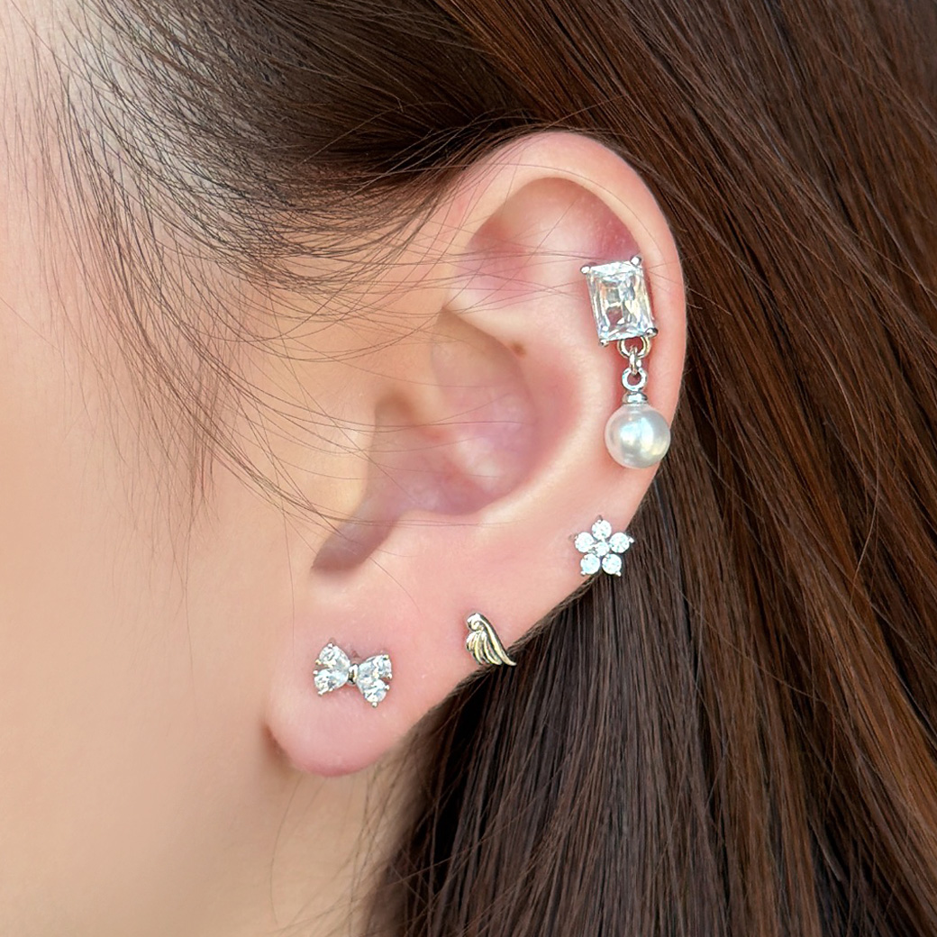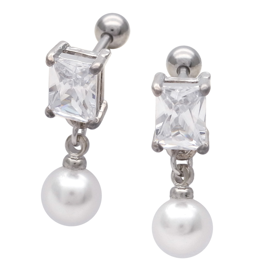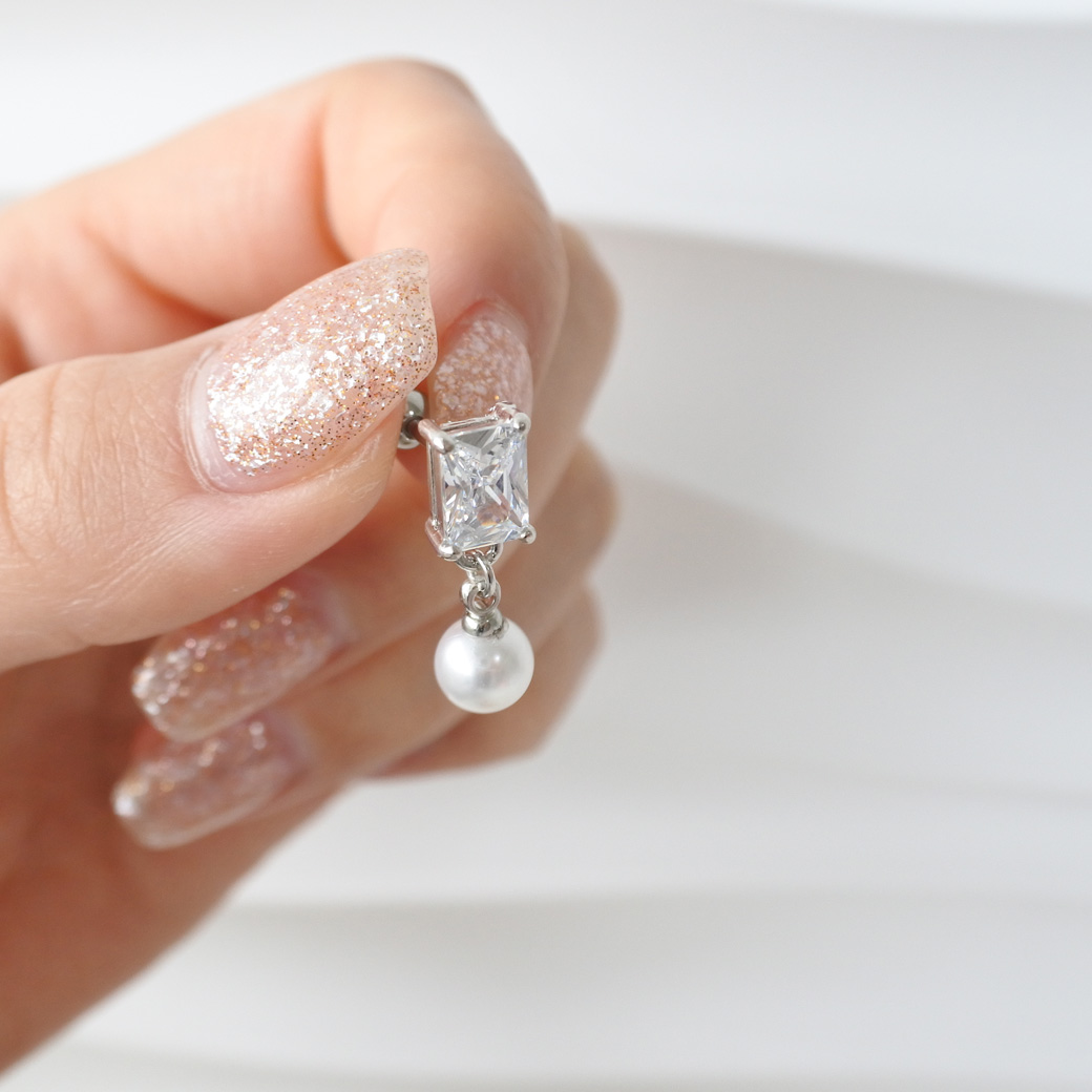 • 【3月新作】[14G 16G ]ジュエリーのようなスクエア 型CZ と揺れるパール がコーデをぐっと上品にストレート 軟骨ピアス ヘリックス ボディピアス 0644