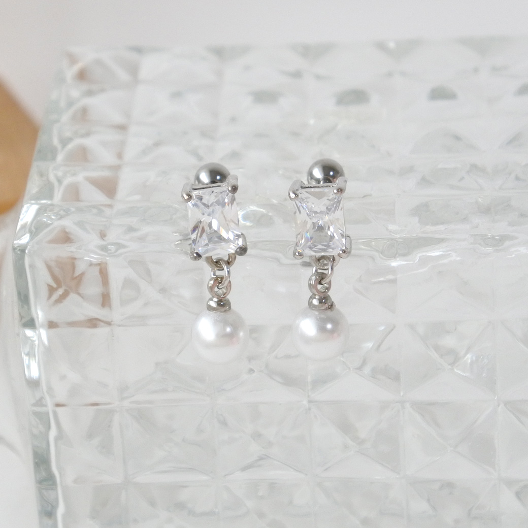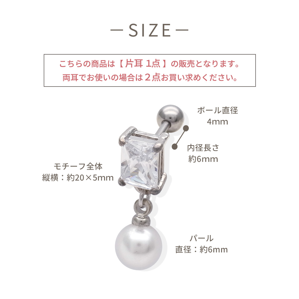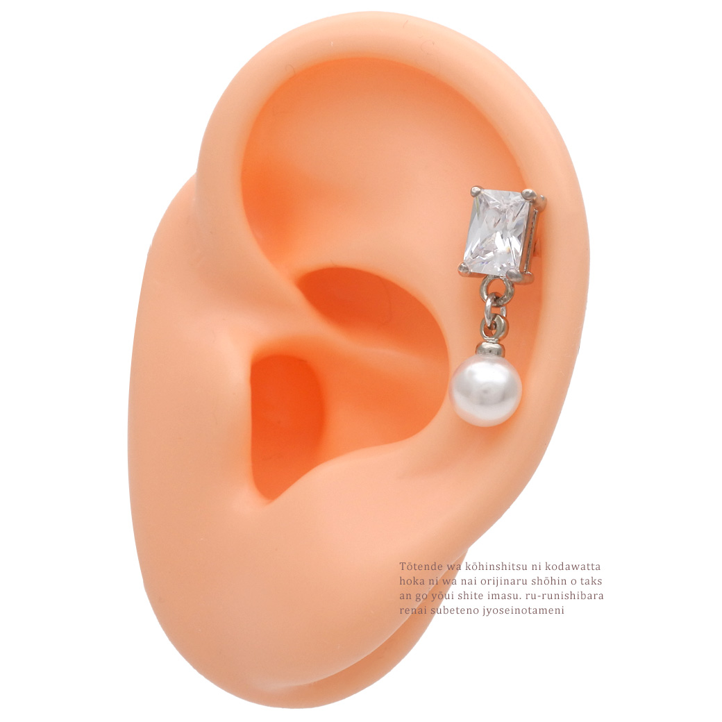 [14G 16G ]ジュエリーのようなスクエア 型CZ と揺れるパール がコーデをぐっと上品にストレート 軟骨ピアス ヘリックス ボディピアス 0644