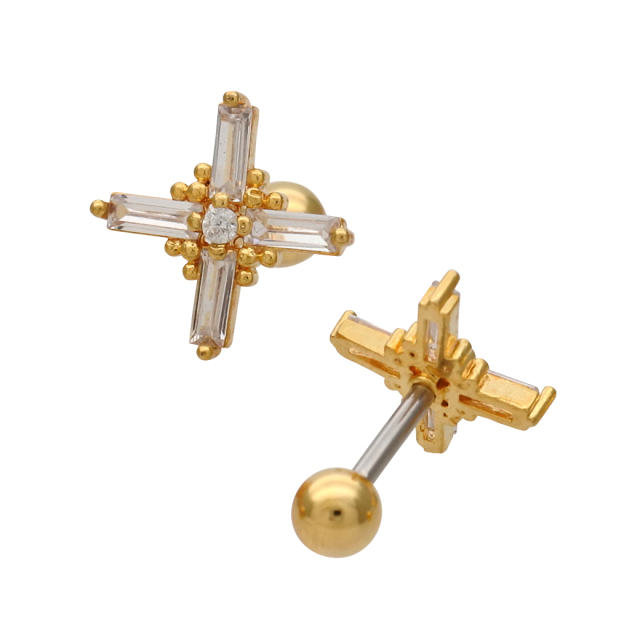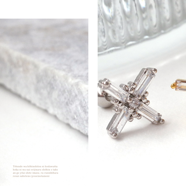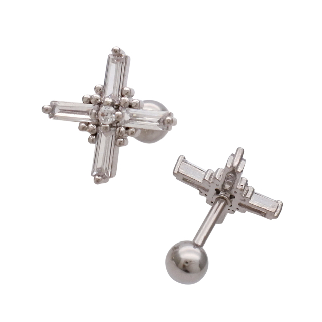 [14G 16G ]ベストな存在感で1つ上のスタイリング CZ クロス。ビジュー キュービックジルコニア ストレート 軟骨ピアス ヘリックス ボディピアス 0673