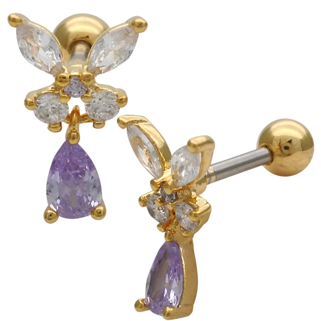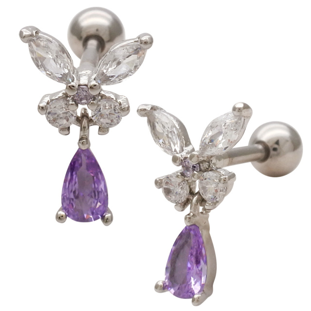[14G 16G ]上品で華やかな総キュービック バタフライ ジュエル 蝶々 butterfly 軟骨ピアス ヘリックス ボディピアス 0679