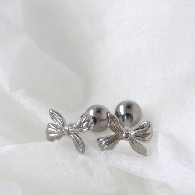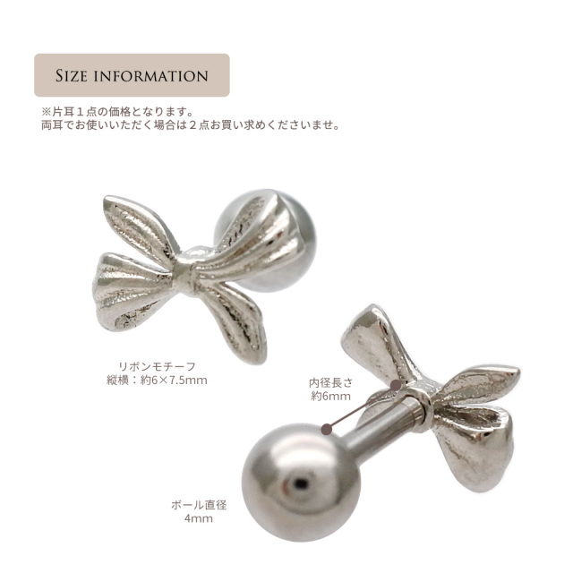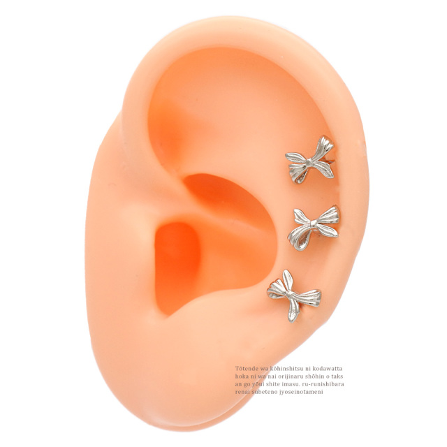 【4月再入荷】[14G 16G ]立体感のあるディテール 甘くなりすぎない ちび リボン デザイン♪ ストレート 軟骨ピアス ヘリックス ボディピアス 0688