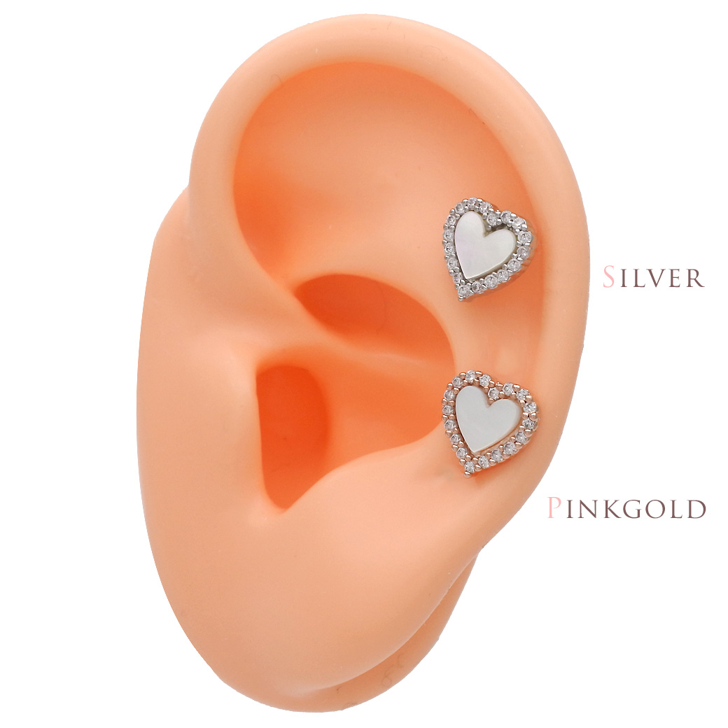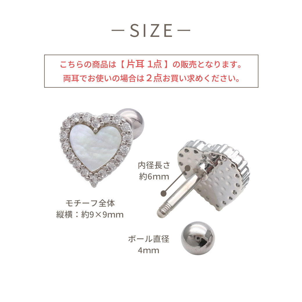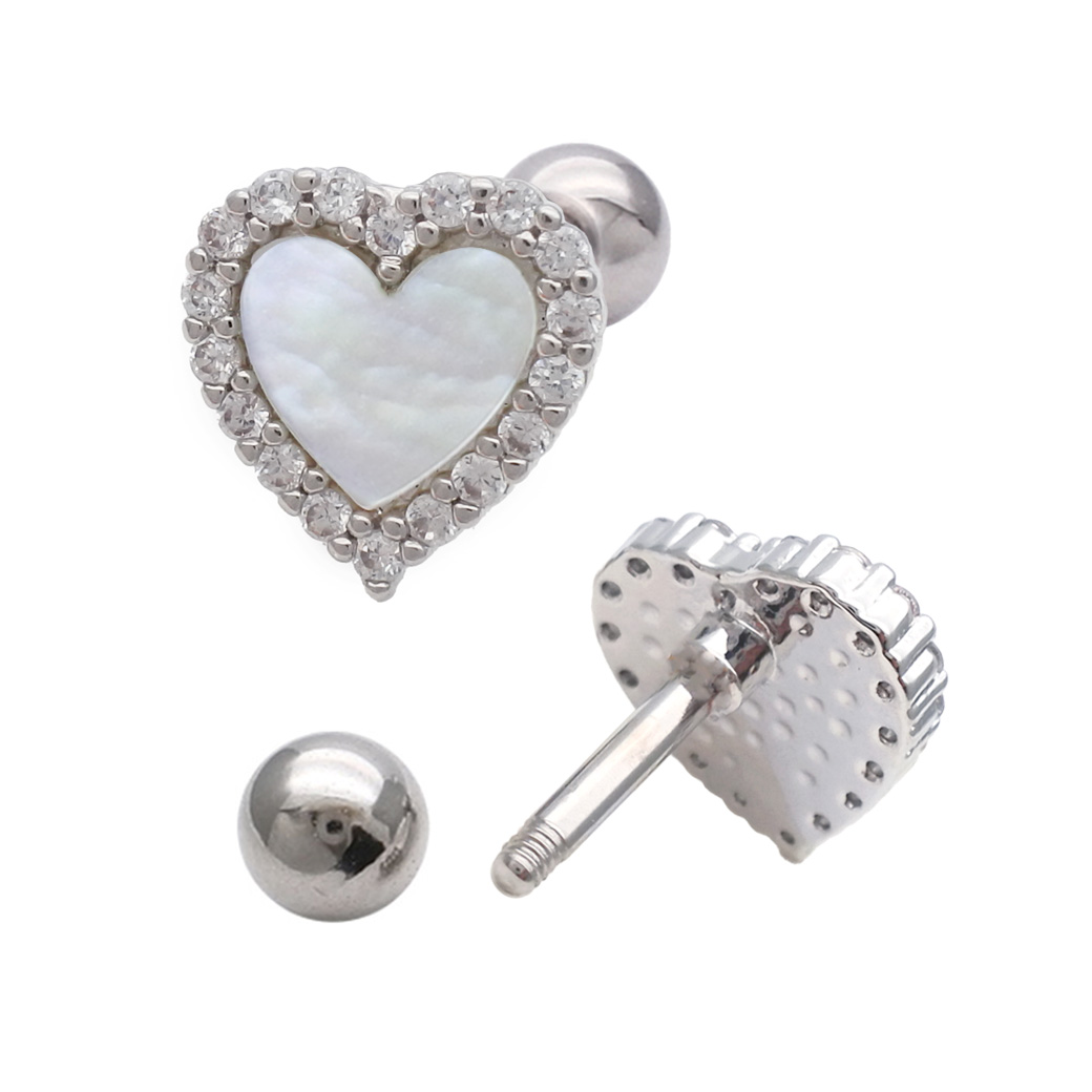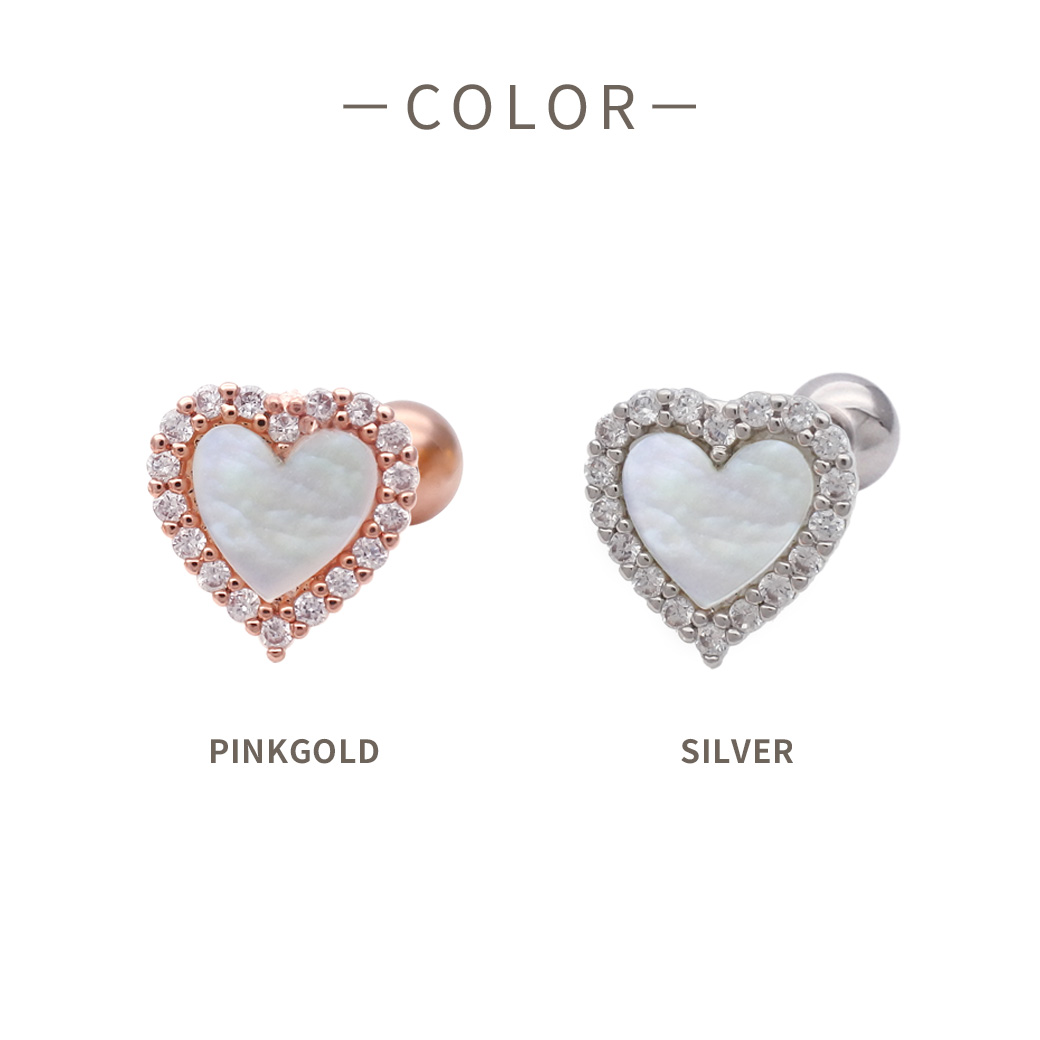 ★今だけ送料無料★ 【3月新作】[14G 16G ]艶っぽいシェル ×縁取りCZ 大人可愛い♪上品ハート デザインストレート 軟骨ピアス ヘリックス ボディピアス 0693