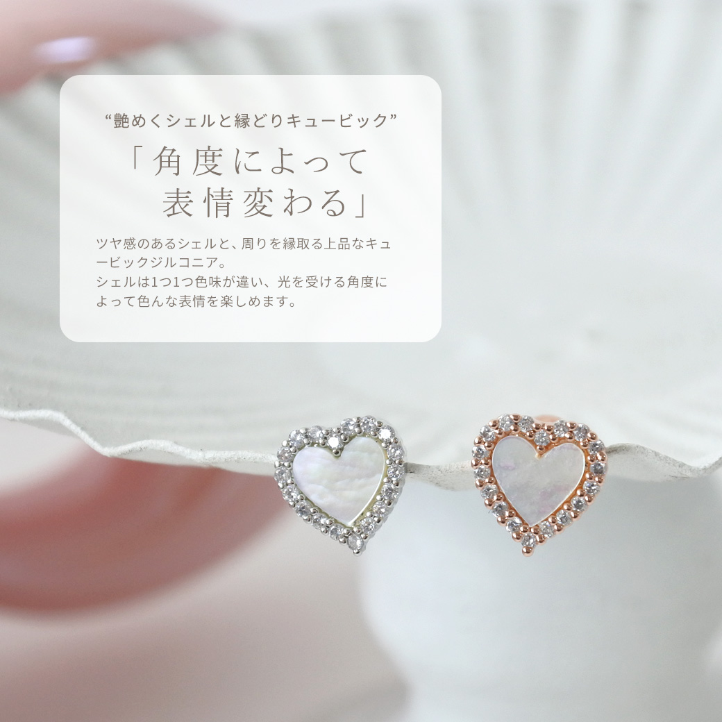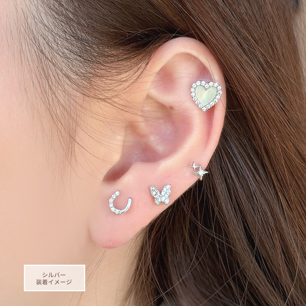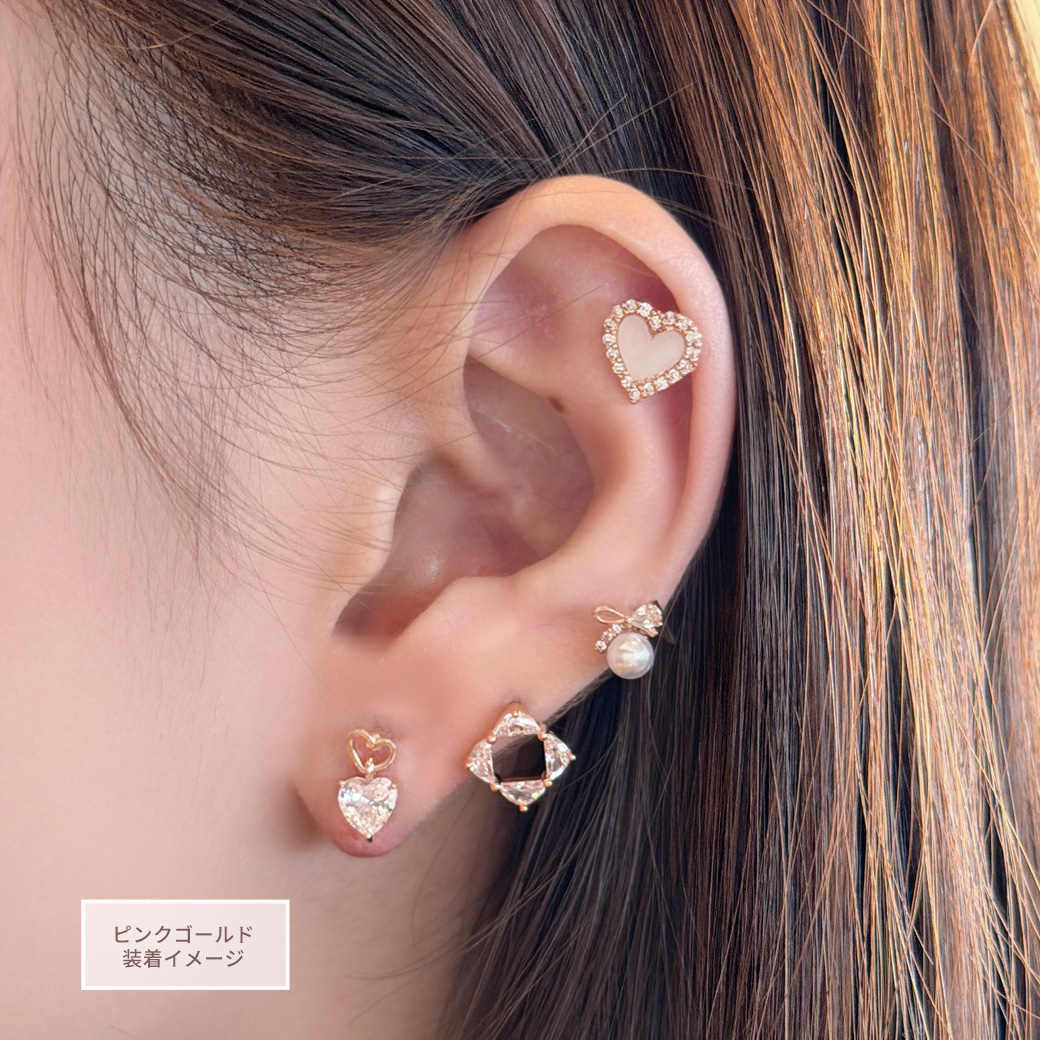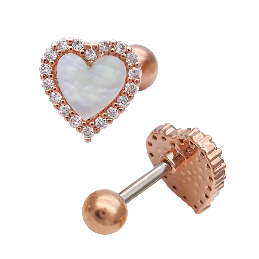 ★今だけ送料無料★ 【3月新作】[14G 16G ]艶っぽいシェル ×縁取りCZ 大人可愛い♪上品ハート デザインストレート 軟骨ピアス ヘリックス ボディピアス 0693