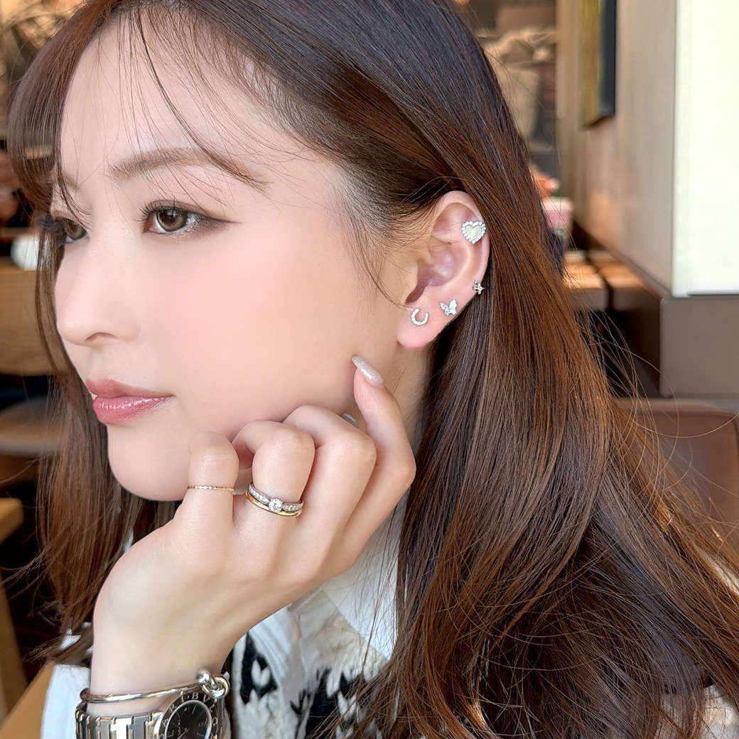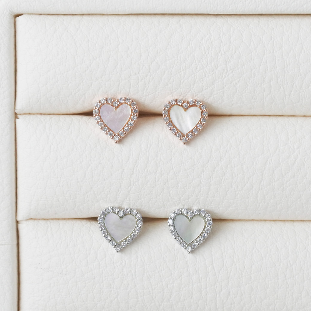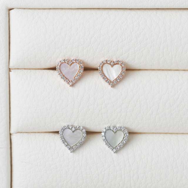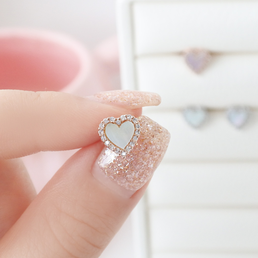 ★今だけ送料無料★ 【3月新作】[14G 16G ]艶っぽいシェル ×縁取りCZ 大人可愛い♪上品ハート デザインストレート 軟骨ピアス ヘリックス ボディピアス 0693