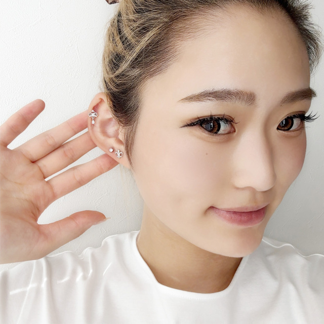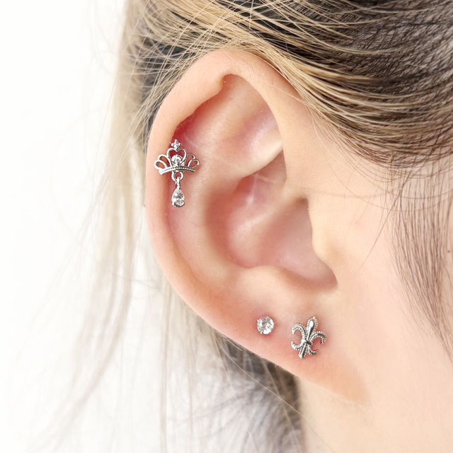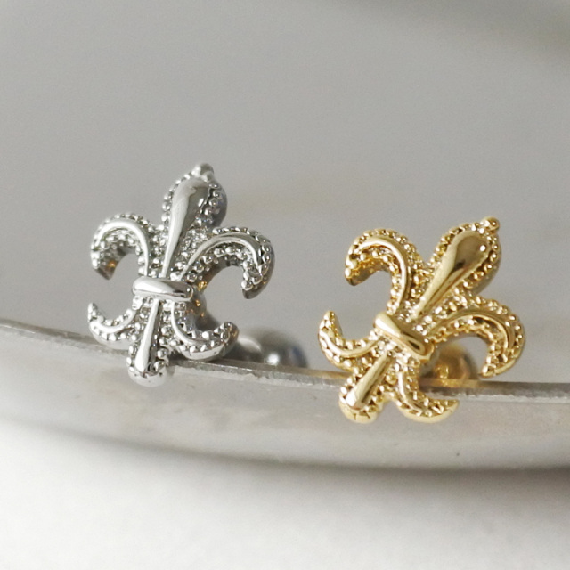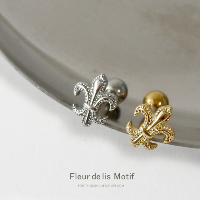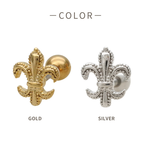 [14G 16G ]大人の装い気品漂うユリの紋章 モチーフ ストレート 軟骨ピアス ヘリックス ボディピアス 0799