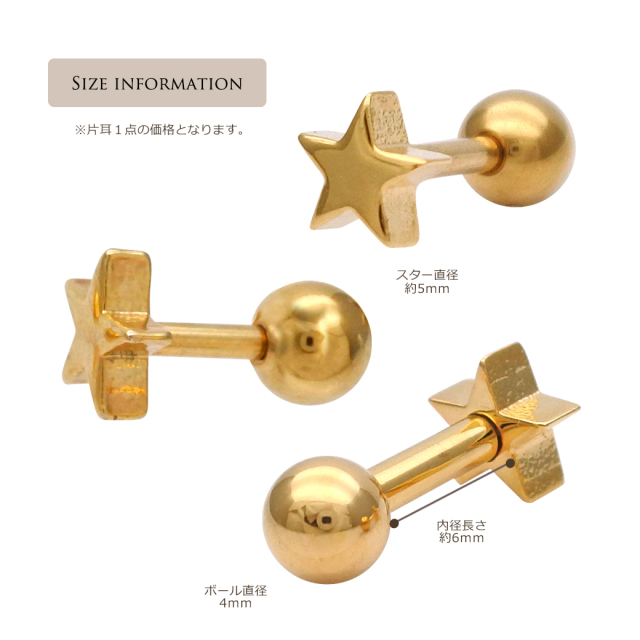 [16G 14G] 厚みのあるフォルムが可愛い ちび スター メタル star ストレート 軟骨ピアス ヘリックス ボディピアス [ゴールド ] 0805