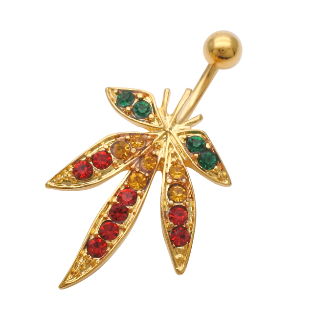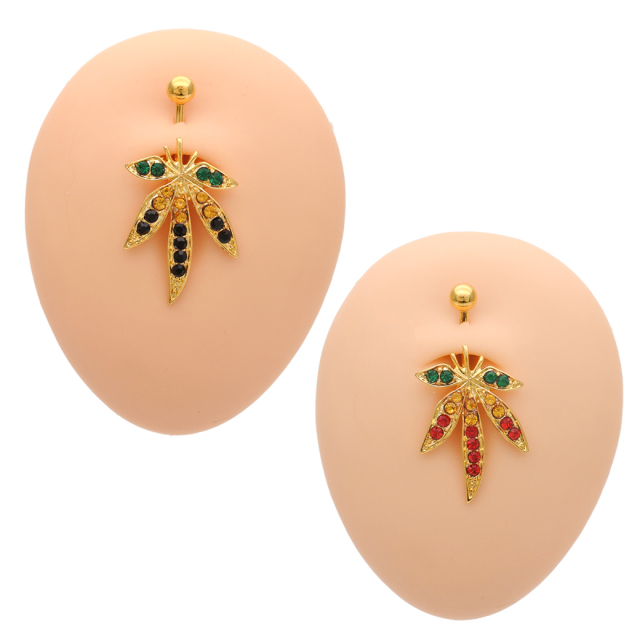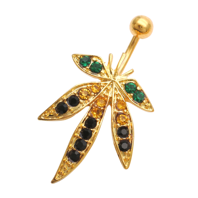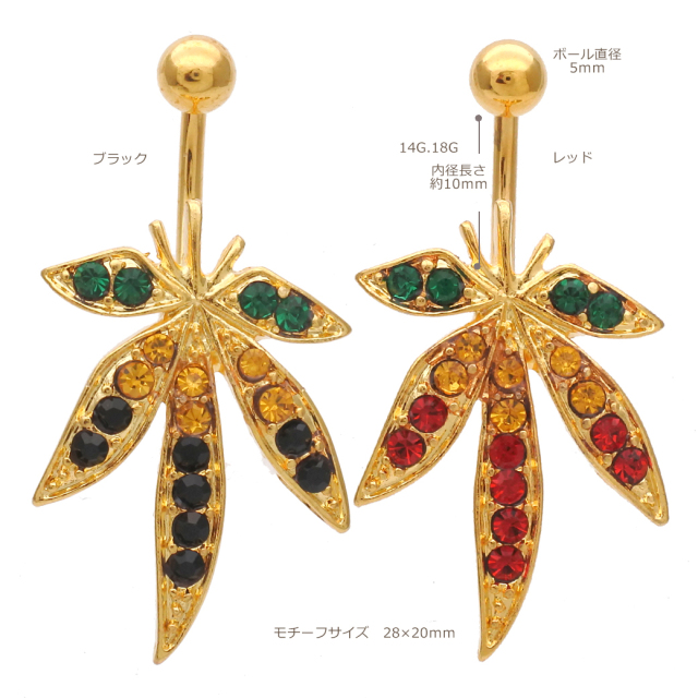[18G 14G ]印象的なアクセントになって可愛い!GOLD モチーフ レゲェ フェス イベント へそピアス 臍ピアス ボディピアス [ラスタカラー]0812