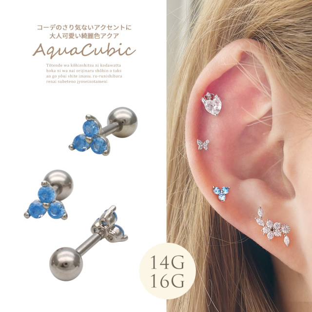 [14G 16G ]コーデのさりげないアクセントに 大人可愛い綺麗色 アクア ストレート 軟骨ピアス ヘリックス ボディピアス 0813