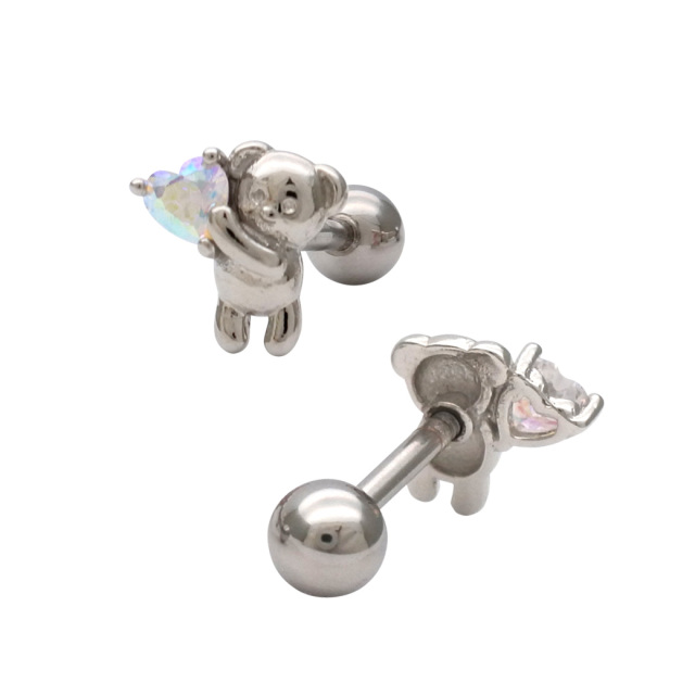 [14G 16G ]ぷっくりオーロラ のくまちゃんが可愛いすぎる ストレート 軟骨ピアス ヘリックス ボディピアス 0840