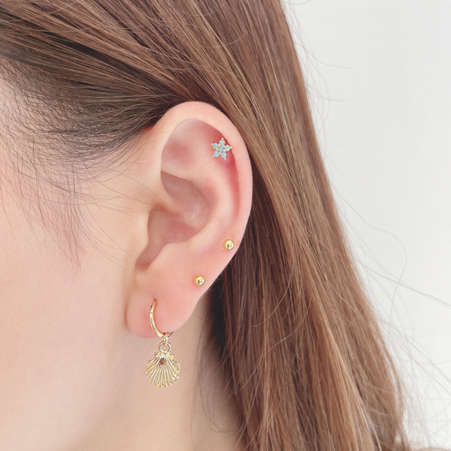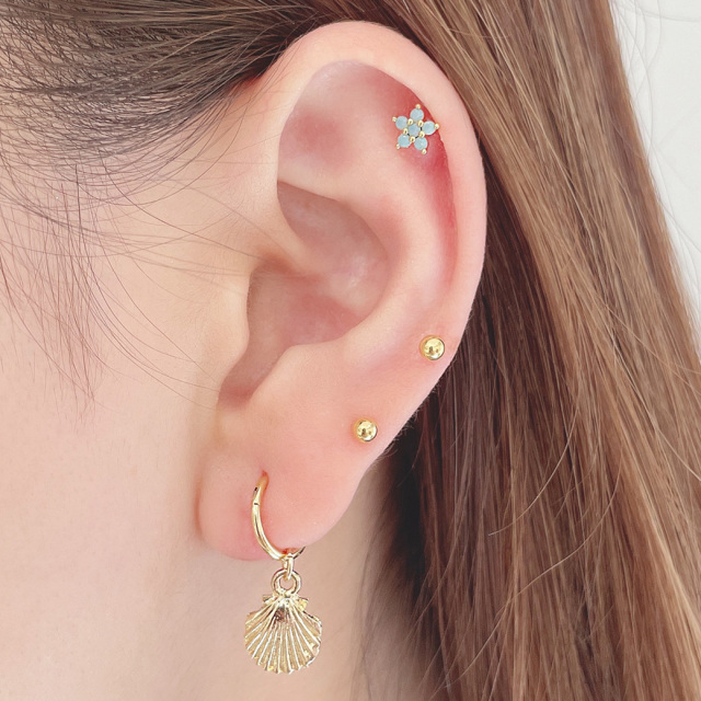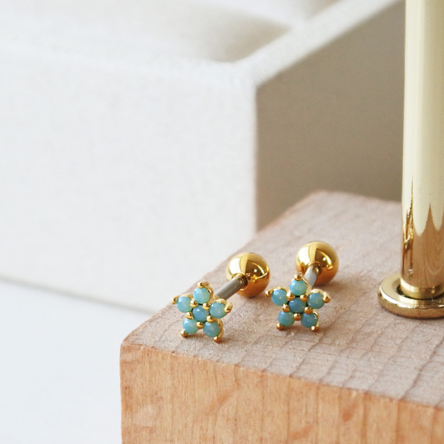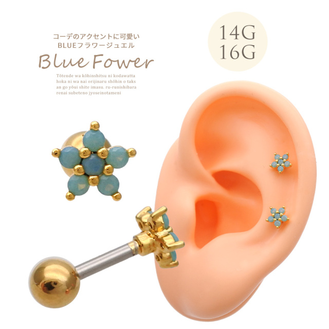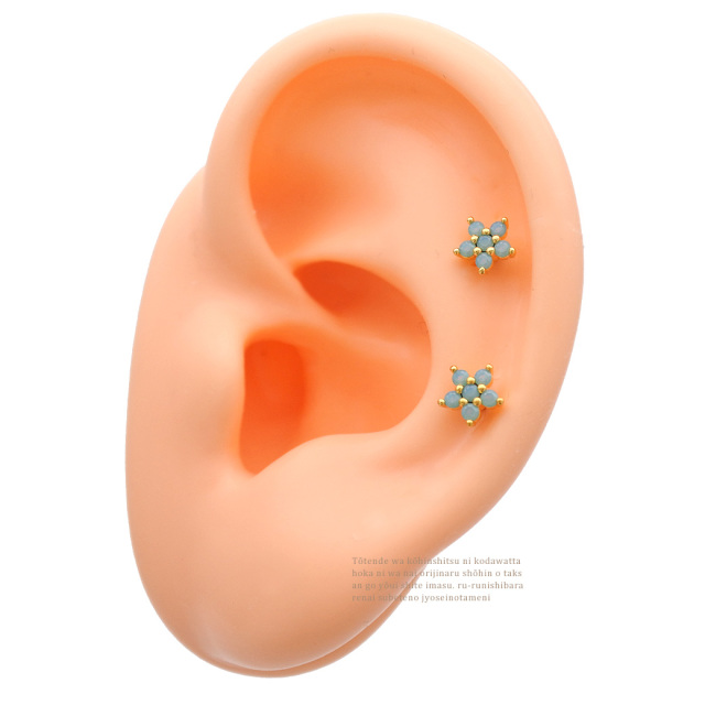 [14G 16G ]コーデのアクセント に可愛い フラワー ジュエル ストレート 軟骨ピアス ヘリックス ボディピアス 0843