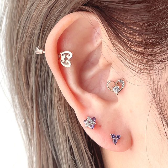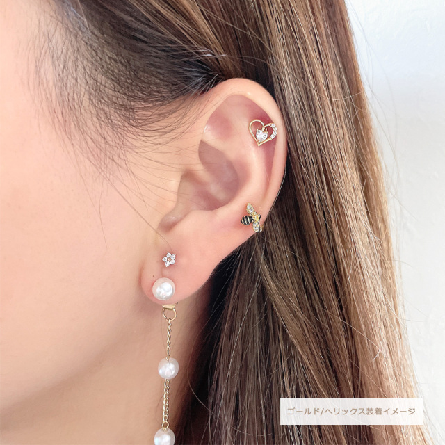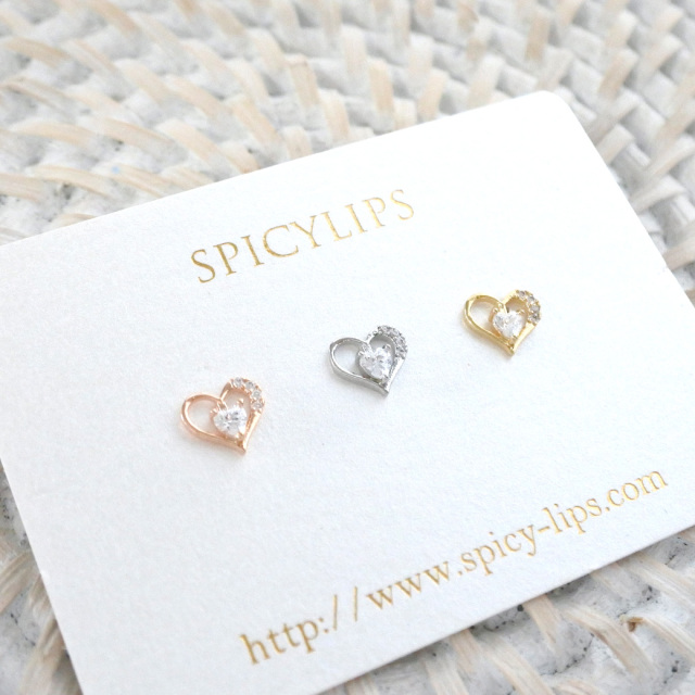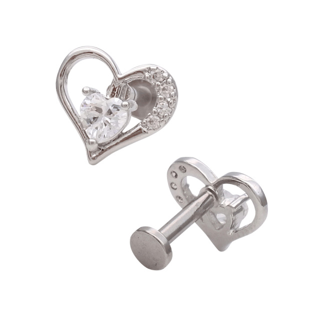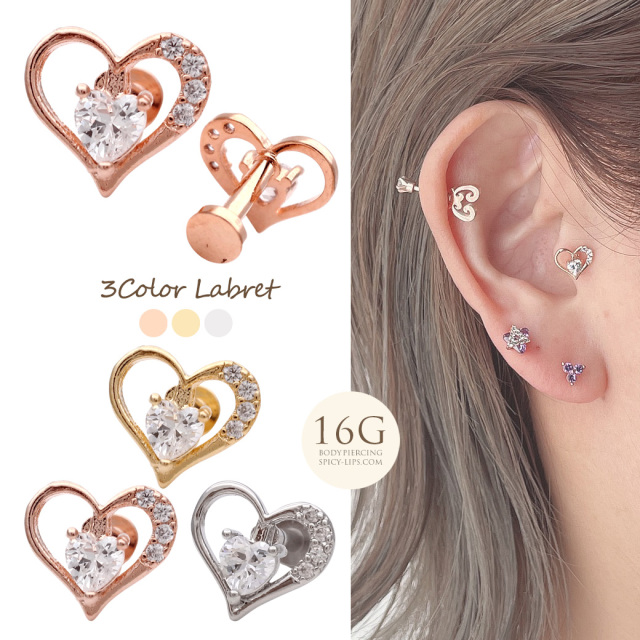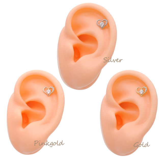 [16G]存在感のある上品キュービックジルコニア ハート ラブレット トラガス ホールに負担の少ないインターナル 軟骨ピアス ボディピアス 0889