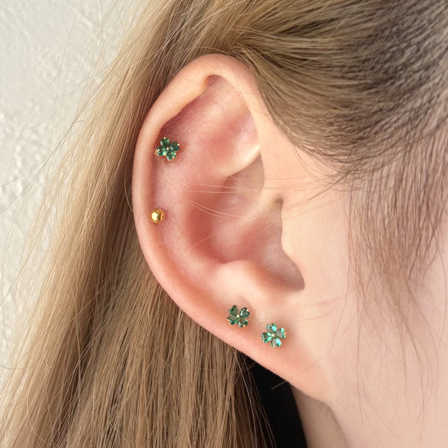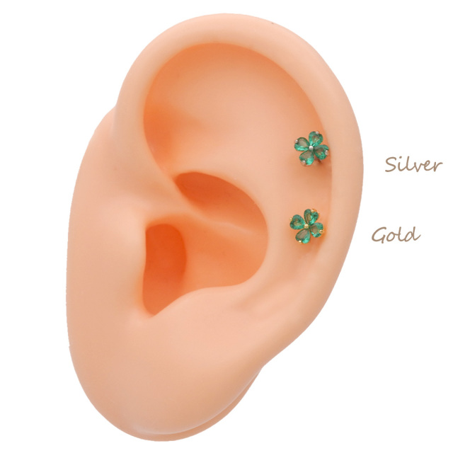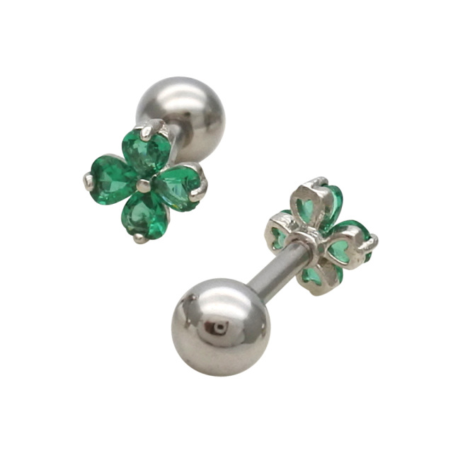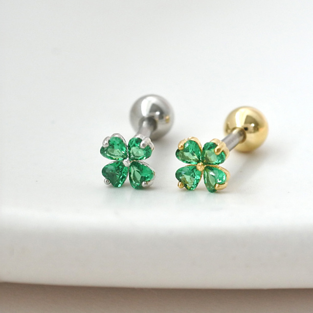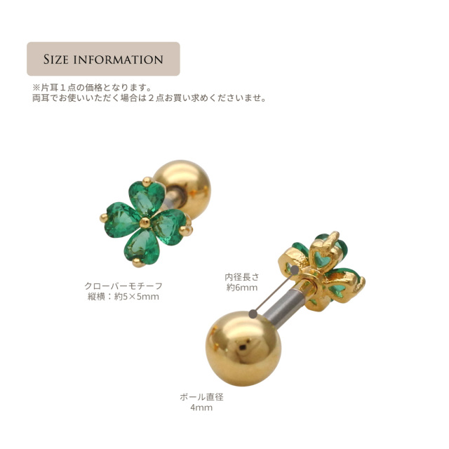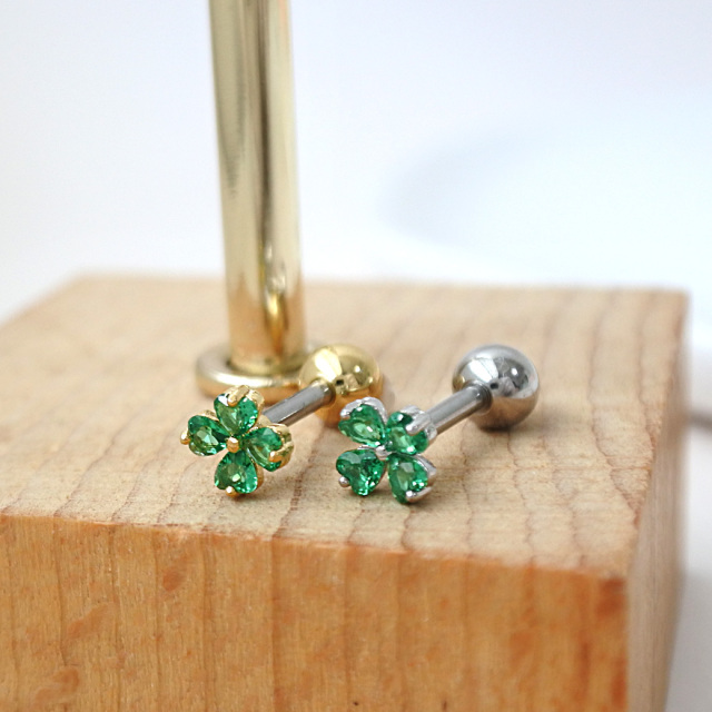 ★売れ筋10位★[14G 16G ]幸せ運んでくれる四葉のクローバー 輝き抜群キュービックジルコニア ストレート 軟骨ピアス ヘリックス ボディピアス 0893