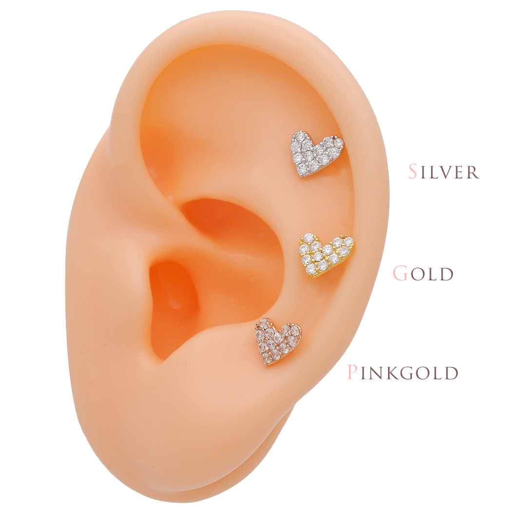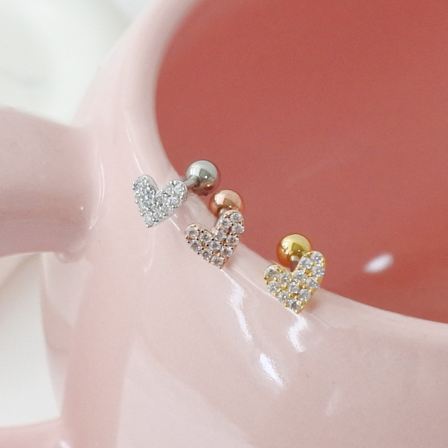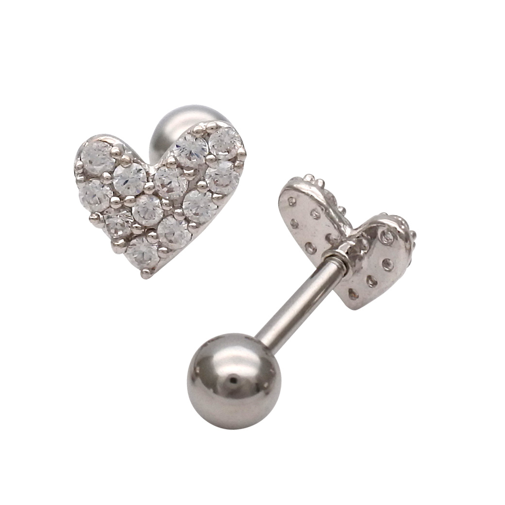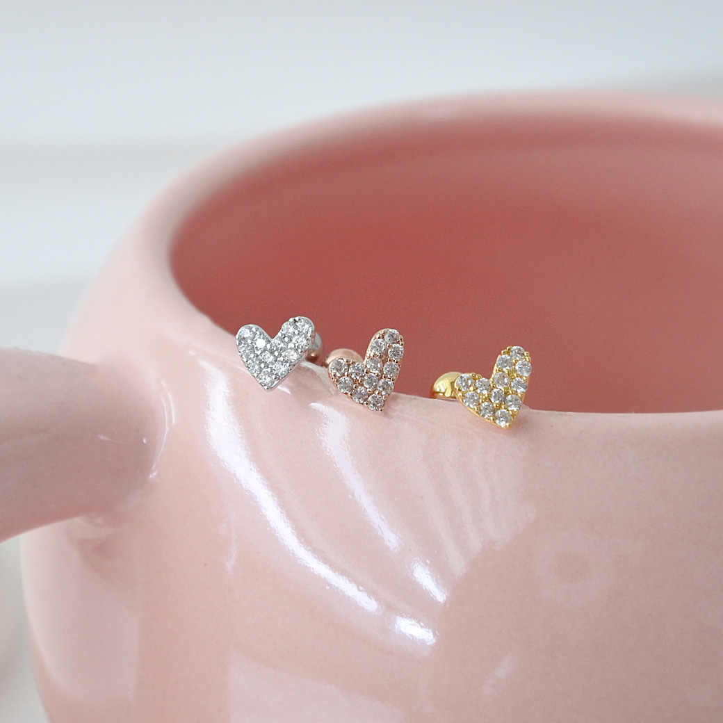 [14G 16G ]パヴェ アシンメトリー ハート heart ストレート 軟骨ピアス ヘリックス ボディピアス 0897