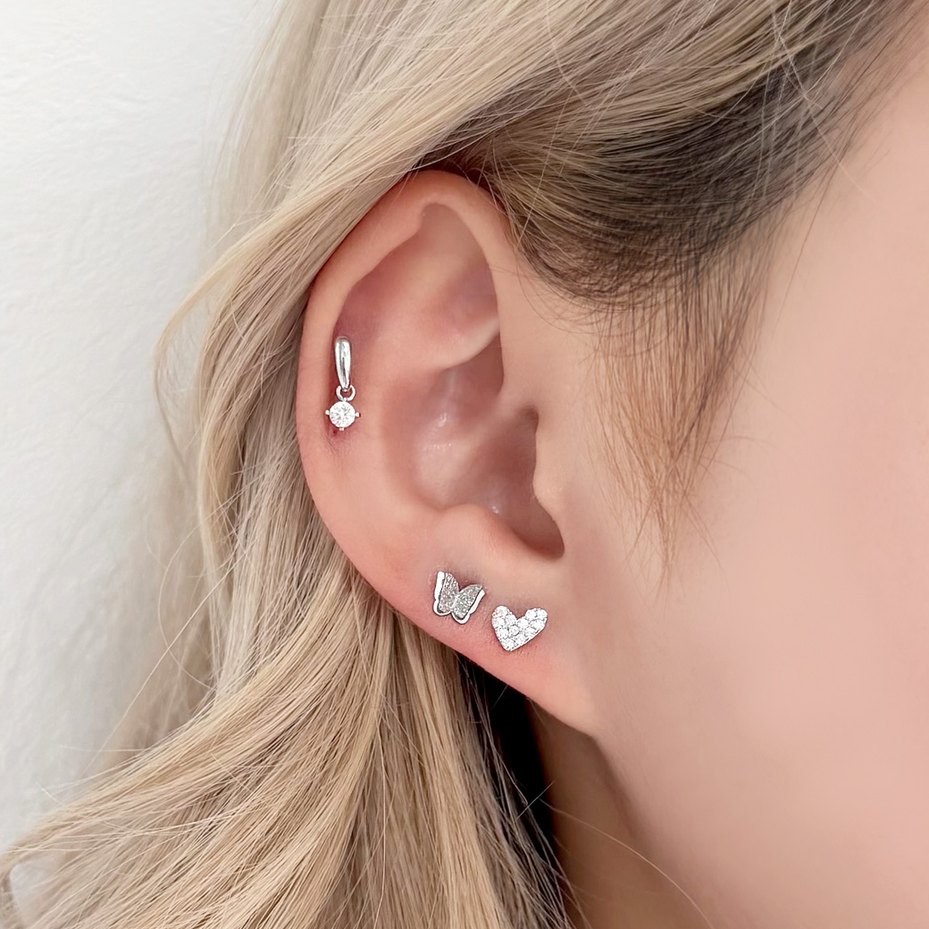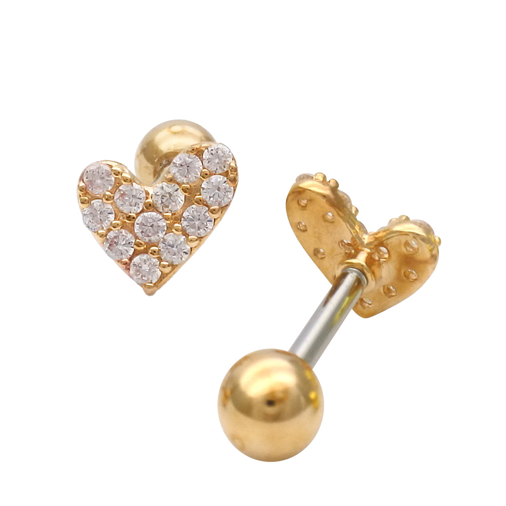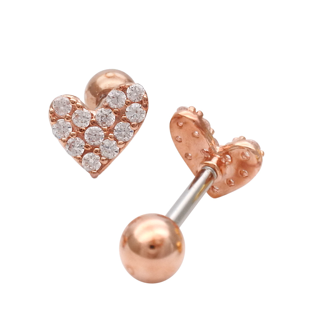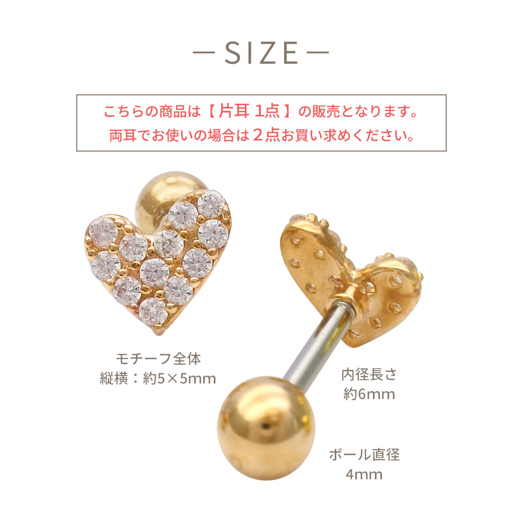 [14G 16G ]パヴェ アシンメトリー ハート heart ストレート 軟骨ピアス ヘリックス ボディピアス 0897