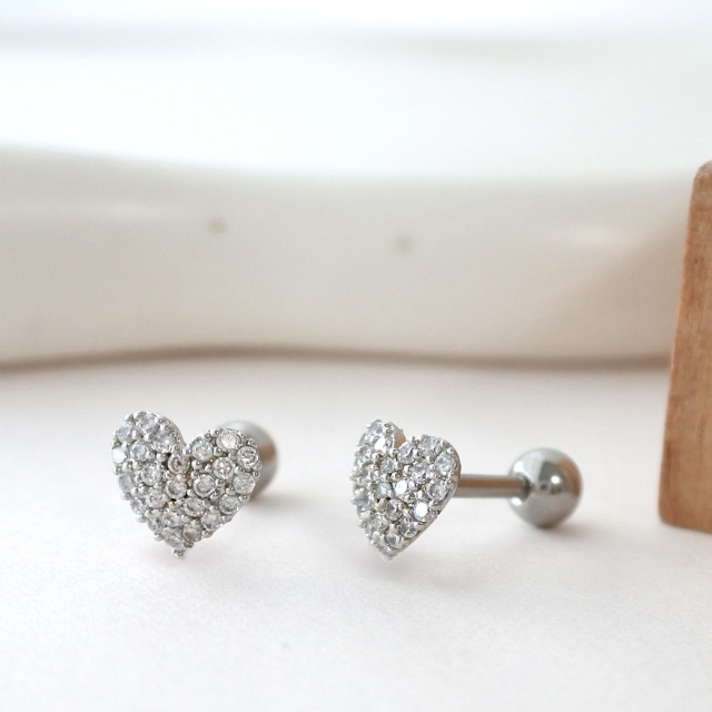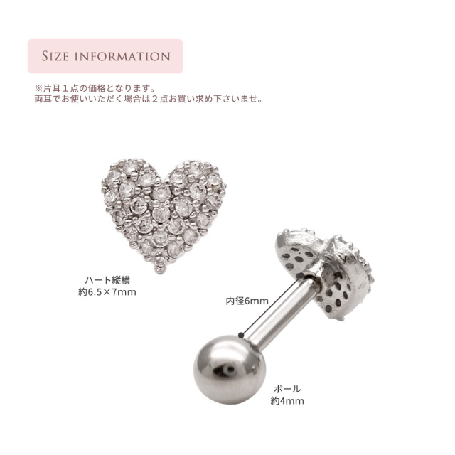 [14G 16G ]華やか♪上品で大人可愛い存在感 キュービック パヴェ ハート ストレート 軟骨ピアス ヘリックス ボディピアス 0995
