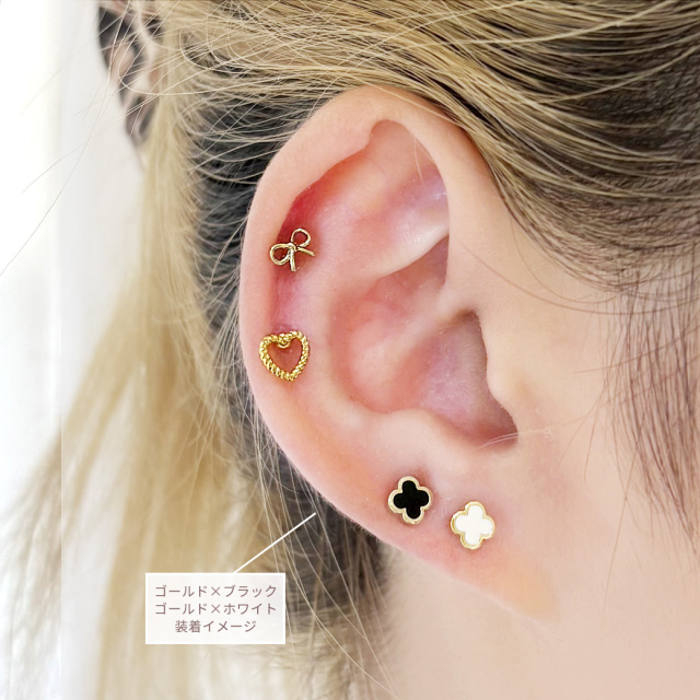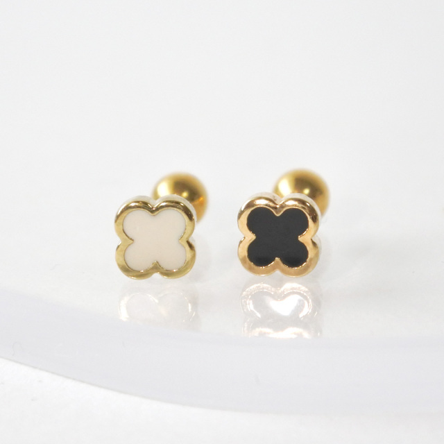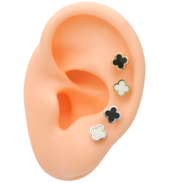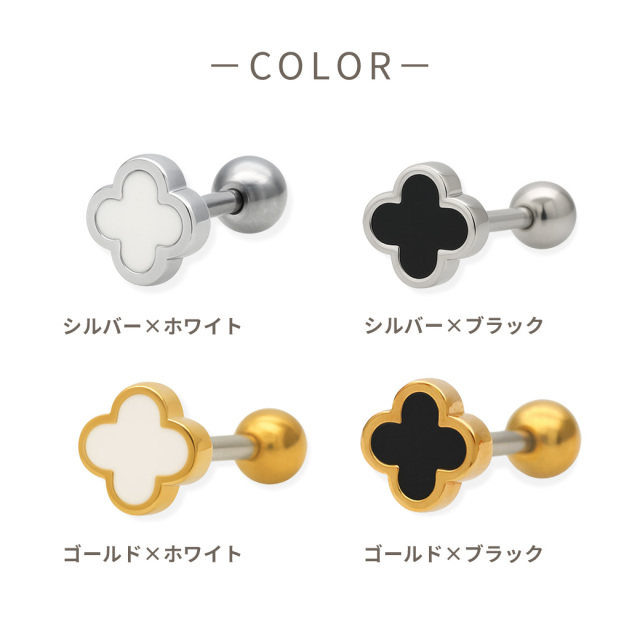 ◇Best11◇[14G 16G ]程よいサイズがかわいい♪ツヤっと輝くクローバー モチーフ ストレート 軟骨ピアス ヘリックス ボディピアス 1003