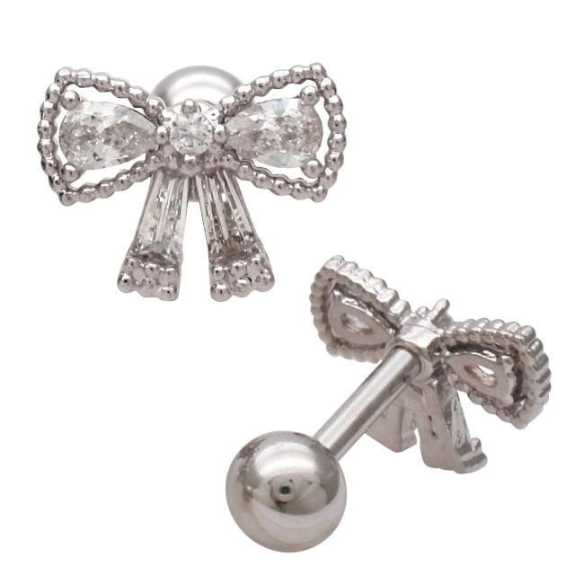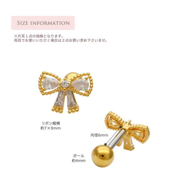 【11月再入荷】[14G 16G ]上品さの中に可愛さをプラスしたキュービック リボン モチーフ ストレート 軟骨ピアス ヘリックス ボディピアス 1022