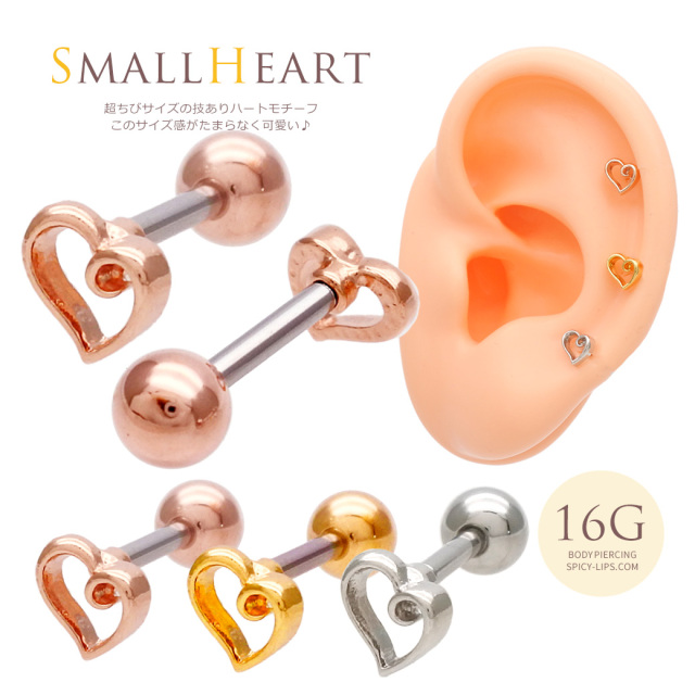 [16G]超ちびサイズの技ありハートモチーフ このサイズ感がたまらなく可愛い♪ SHAPE HEART メタル シンプル オープンハート ストレート 軟骨ピアス ヘリックス ボディピアス 1067