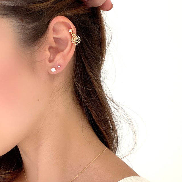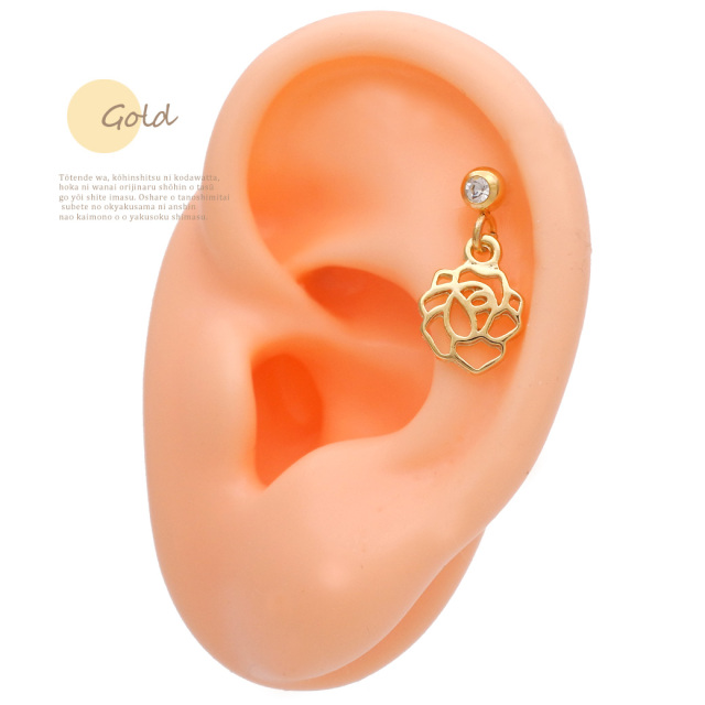[14G 16G ]甘すぎない、大人かわいい存在感。 メタルカメリア フラワー 花 ◇SPICYLIPSオリジナル◇ 軟骨ピアス ヘリックス ボディピアス 1092