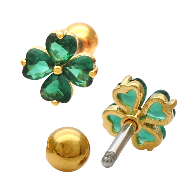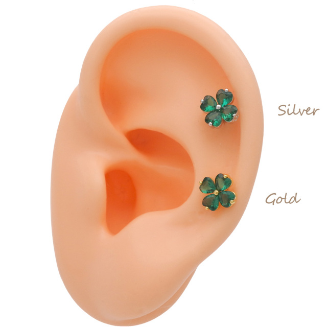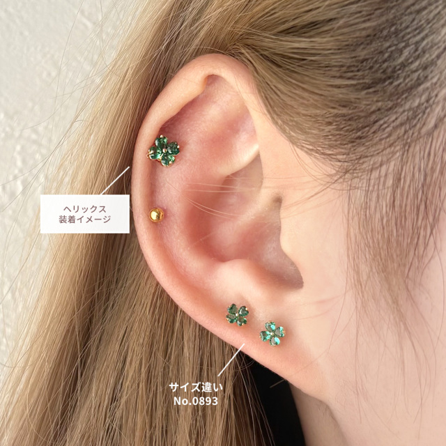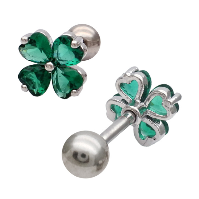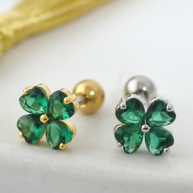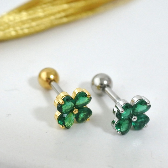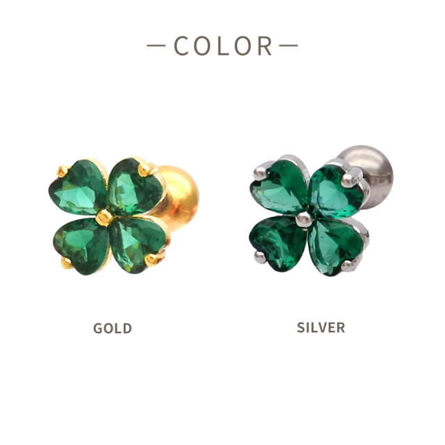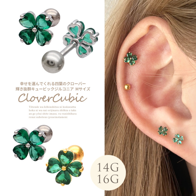 [14G 16G ]幸せ運んでくれる四葉のクローバー 輝き抜群キュービックジルコニア ストレート 軟骨ピアス ヘリックス ボディピアス [Mサイズ] 1127