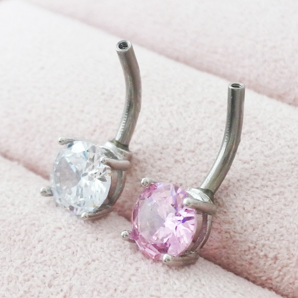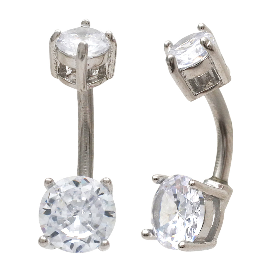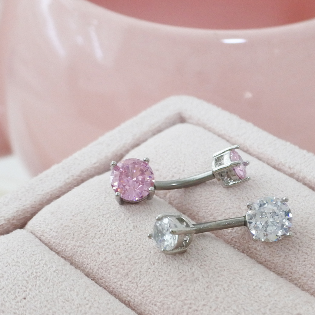 【4月新作】[14G ]上品な小さめサイズnew♪繊細に輝くキュービックジルコニア 縦爪キャッチ付きダブルジュエルホールに負担の少ないインターナル へそピアス ボディピアス 1132