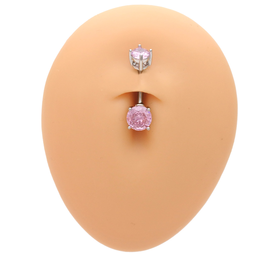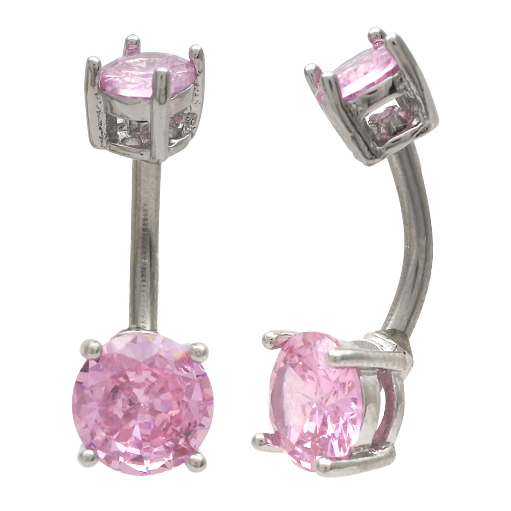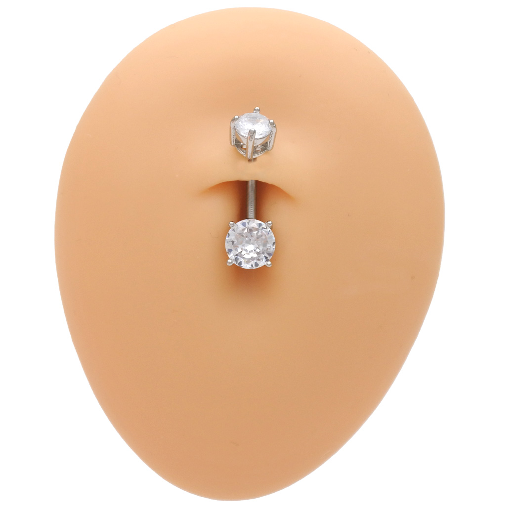 【4月新作】[14G ]上品な小さめサイズnew♪繊細に輝くキュービックジルコニア 縦爪キャッチ付きダブルジュエルホールに負担の少ないインターナル へそピアス ボディピアス 1132