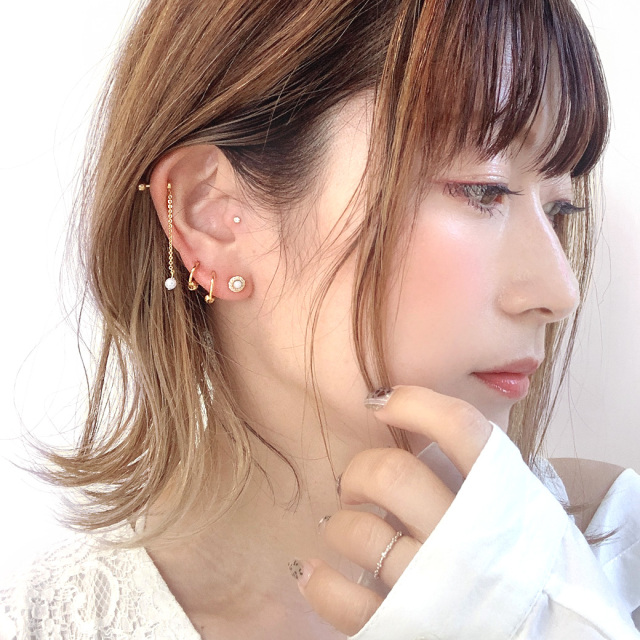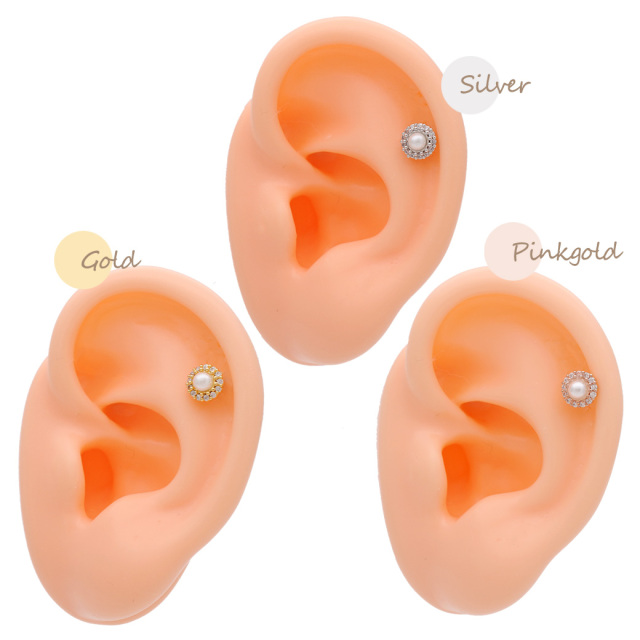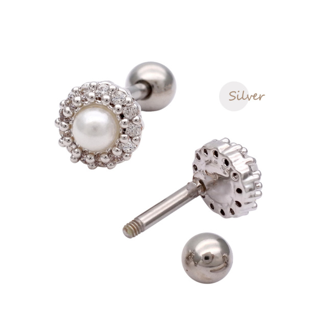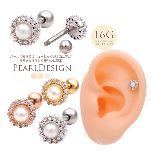 [16G]耳元を女性らしく華やかに演出してくれる。パール ×キュービックジルコニア 軟骨ピアス ヘリックス ボディピアス 1135