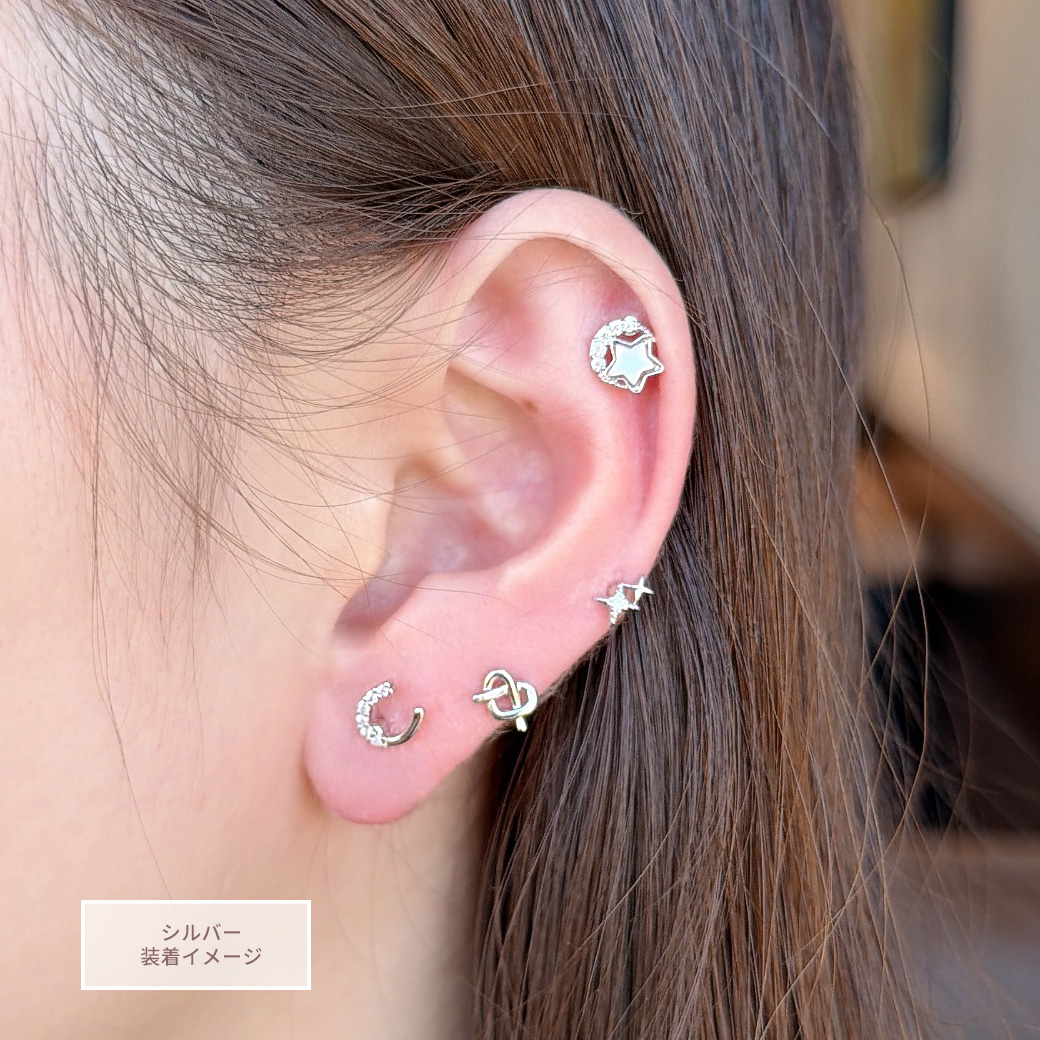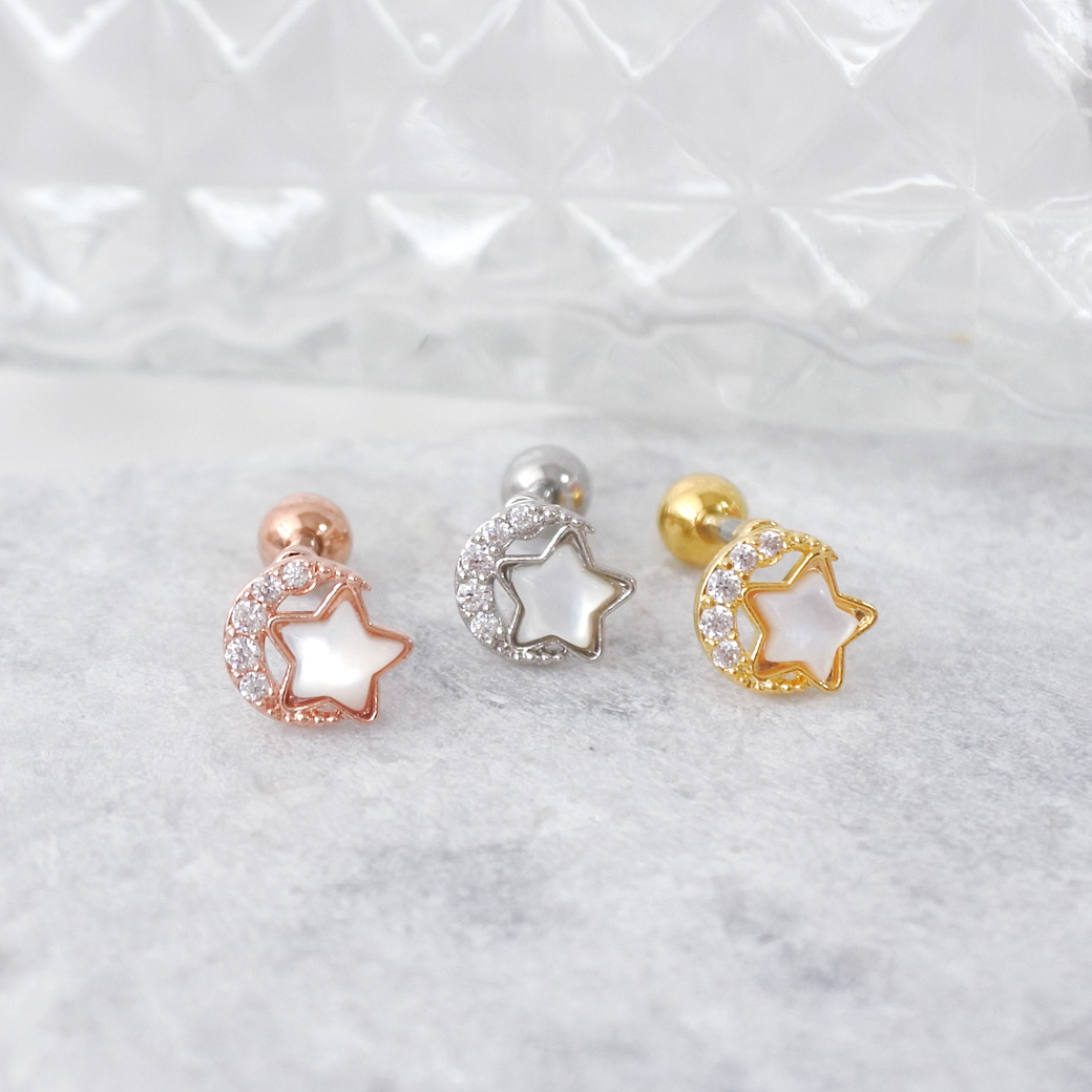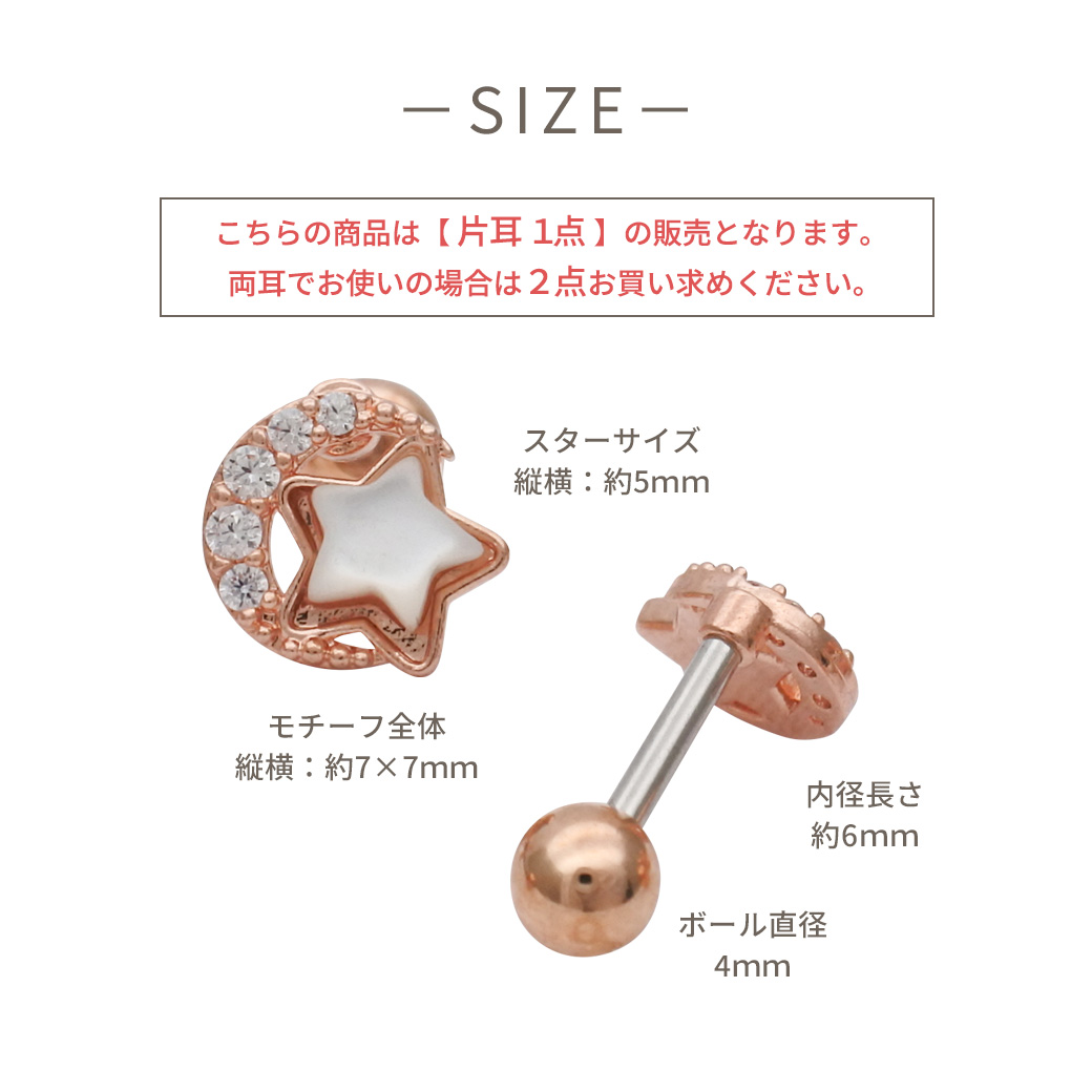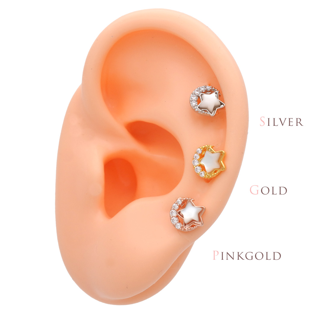 【4月新作】[14G 16G ]軽やかにきらめく透け感が美しいシアースター &ムーン ストレート 軟骨ピアス ヘリックス ボディピアス 1154